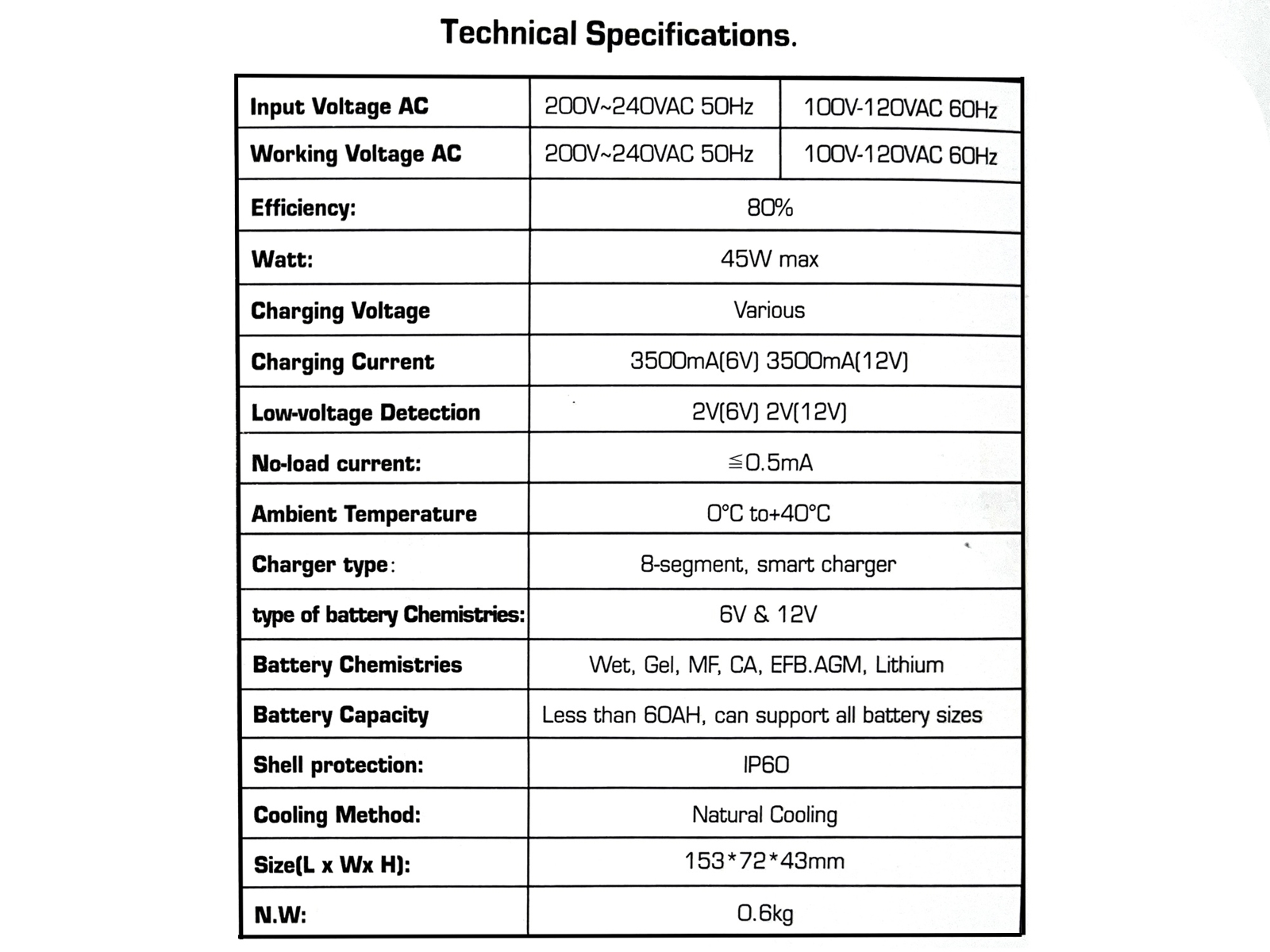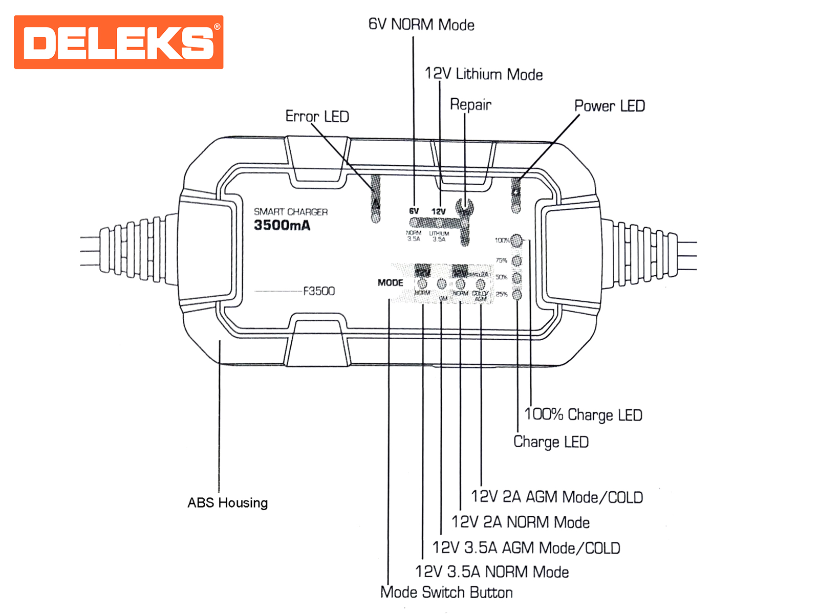 - Automatic detection of 6/12V battery voltage;