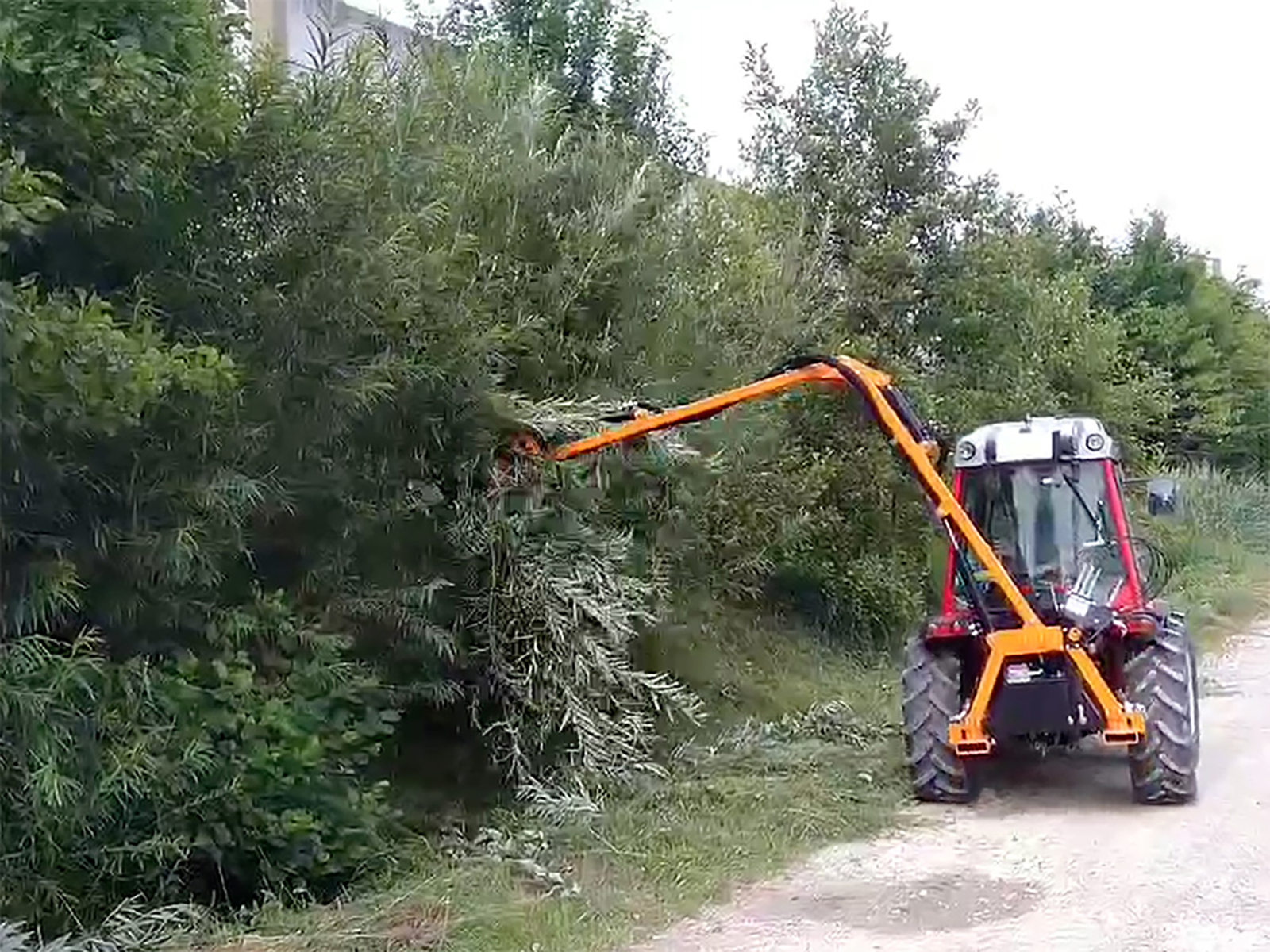 Beschnitt von Bäumen und Hecken besonders an schwer zugänglichen Stellen. Das Schneiden von Hecken wird somit völlig mühelos. Sie funktioniert auf beiden Seiten (rechts und links). Auch frontal einsetzbar. Für Traktoren 20-60 PS, Mindestgewicht 800 kg.