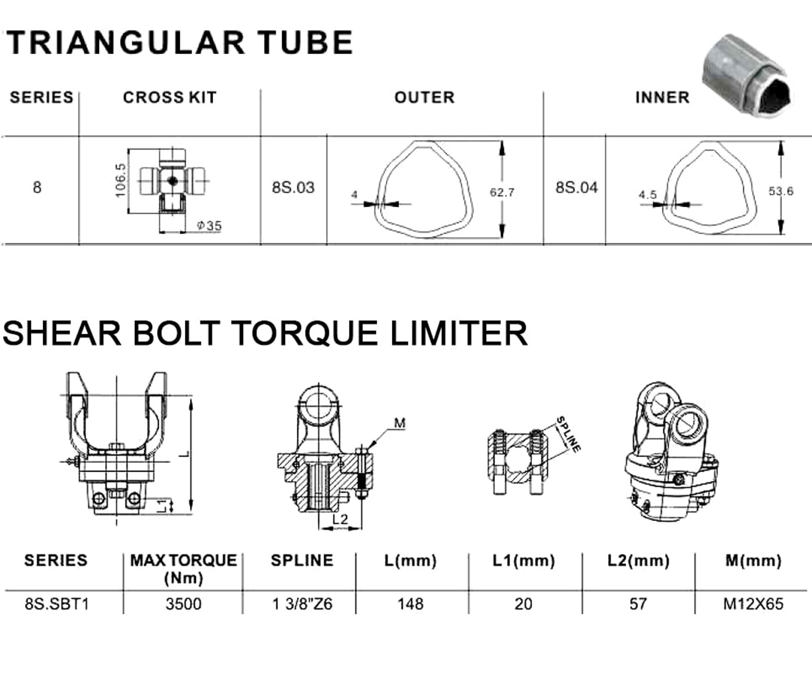 Verhindert die Überlastung durch Bruch des Bolzens bei einem vorgebenen Wert. Nabe und Joch bleiben durch einen Lagerring miteinander verbunden, dieser ermöglicht den Teilen unabhängig voneinander weiterzudrehen. Seitlich montiert.
