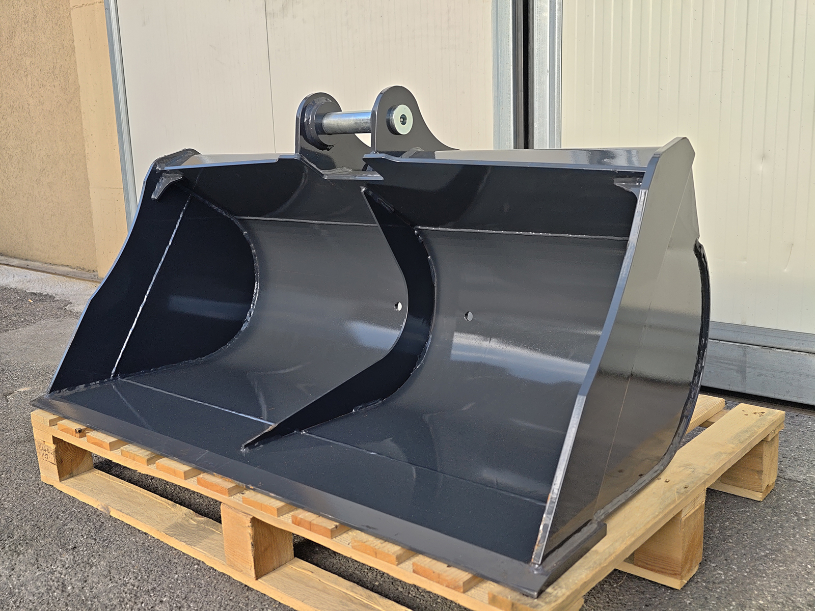 DELEKS® 120 cm Planier- und Erdschaufel, kompatibel mit dem Minibagger Deleks S380 und Maschinen mit ähnlichen Aufnahmeabmessungen. Die große Breite eignet sich zur schnellen Bewegung leichter Materialien, zum Planieren großer Flächen und für Verfüllarbeiten.