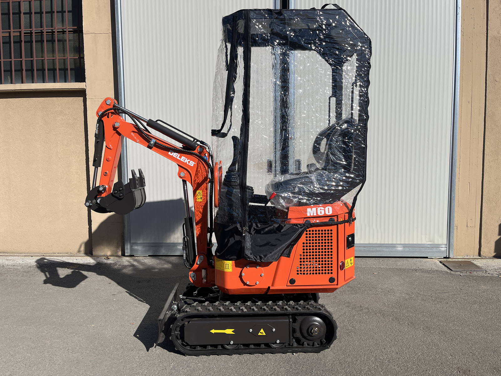 Egal ob das Wetter mitspielt oder nicht - der Universal Regen- und Windschutz ist die perfekte Lösung für den DELEKS® Minibagger M60.