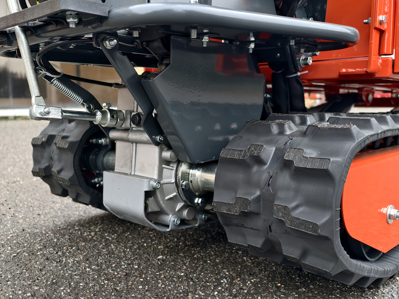 Der Gummiraupenantrieb sorgt für hohe Stabilität und Traktion auf unebenem, schlammigem, rutschigem oder geneigtem Untergrund und macht den MD-800FB ideal für Bergregionen, Forstarbeiten und landwirtschaftliche Betriebe.
