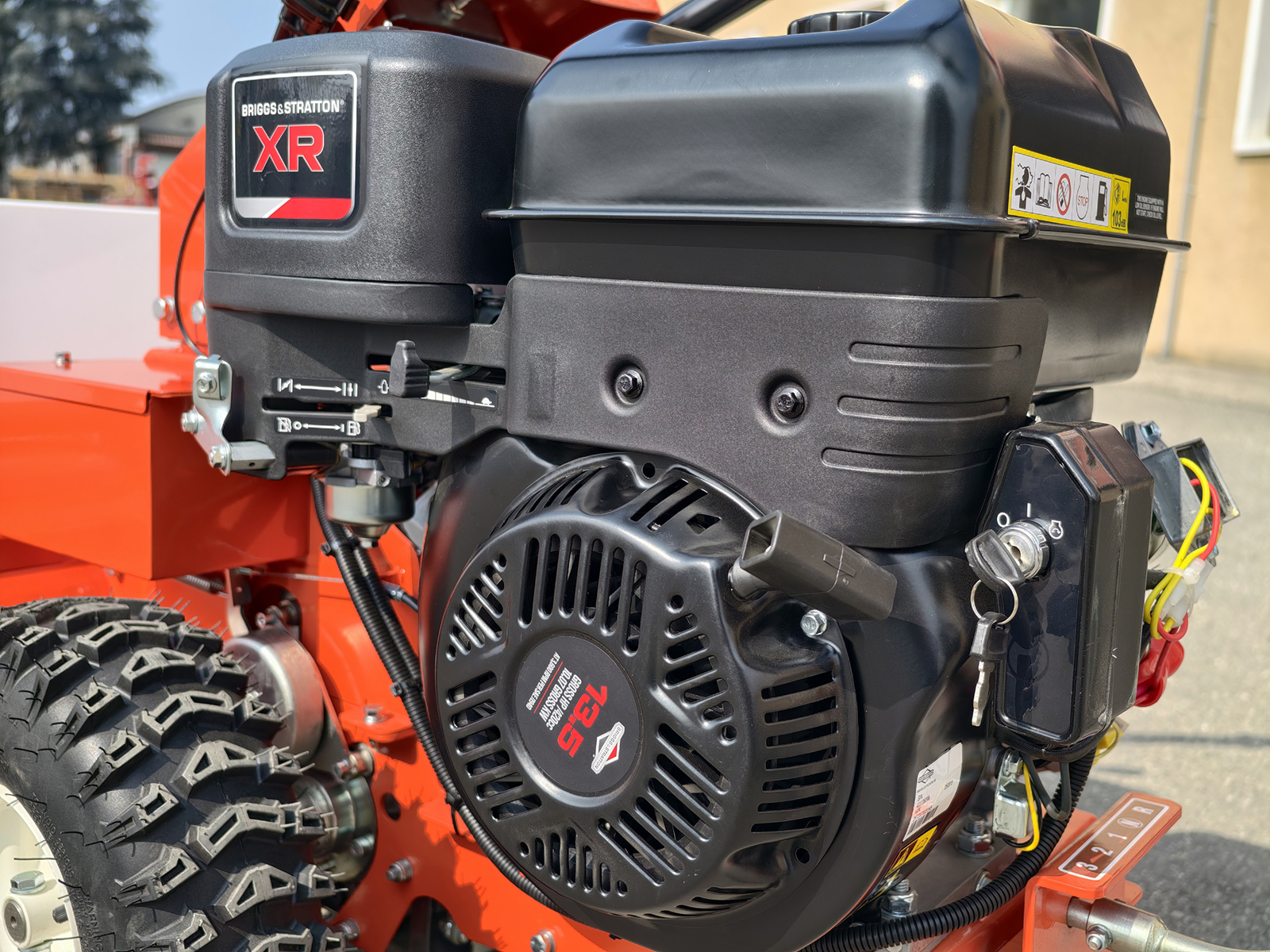 Die Maschine ist mit einem leistungsstarken Briggs & Stratton XR2100 Motor ausgestattet, geeignet für den Dauereinsatz bei anspruchsvoller Vegetation.