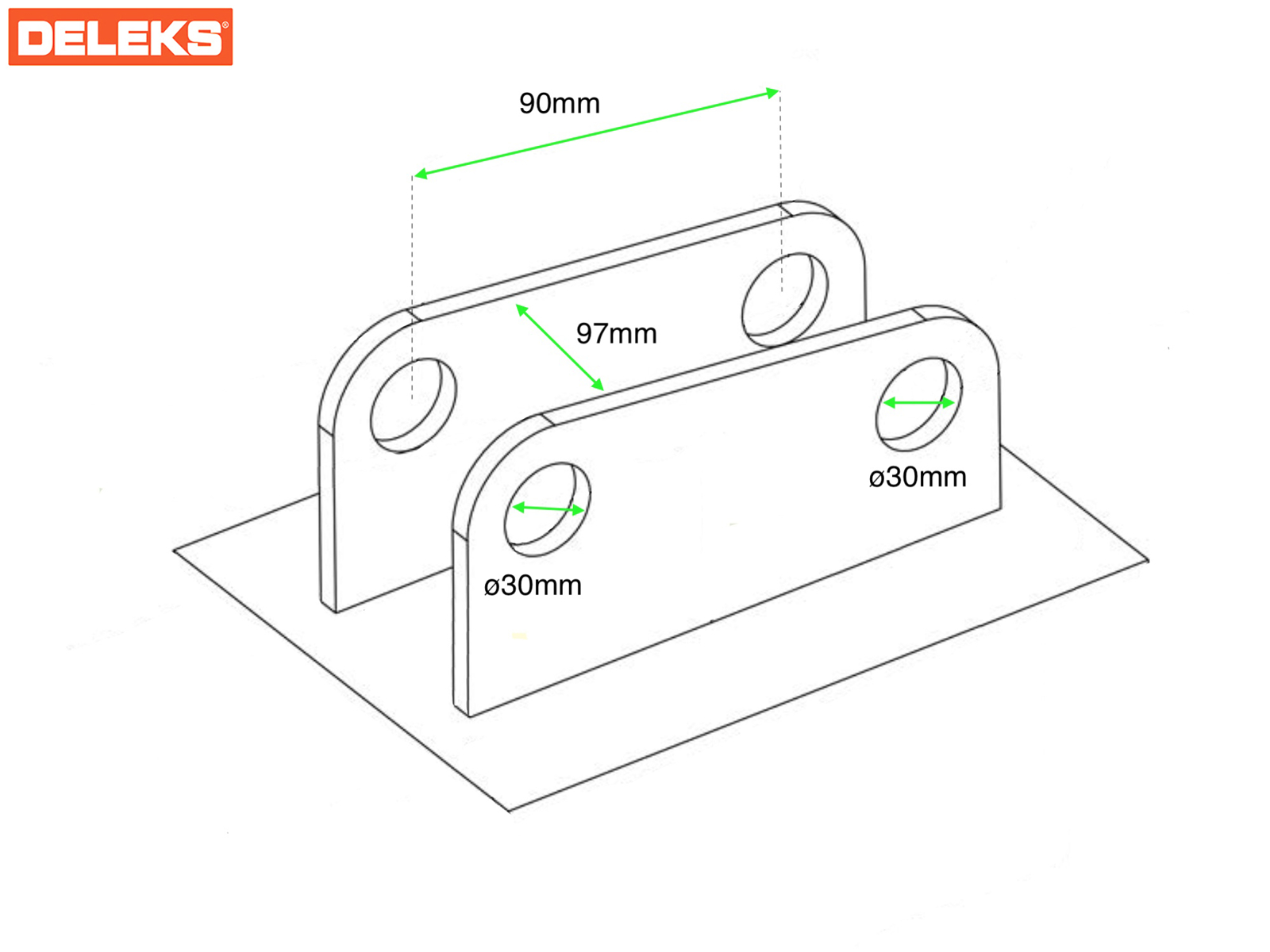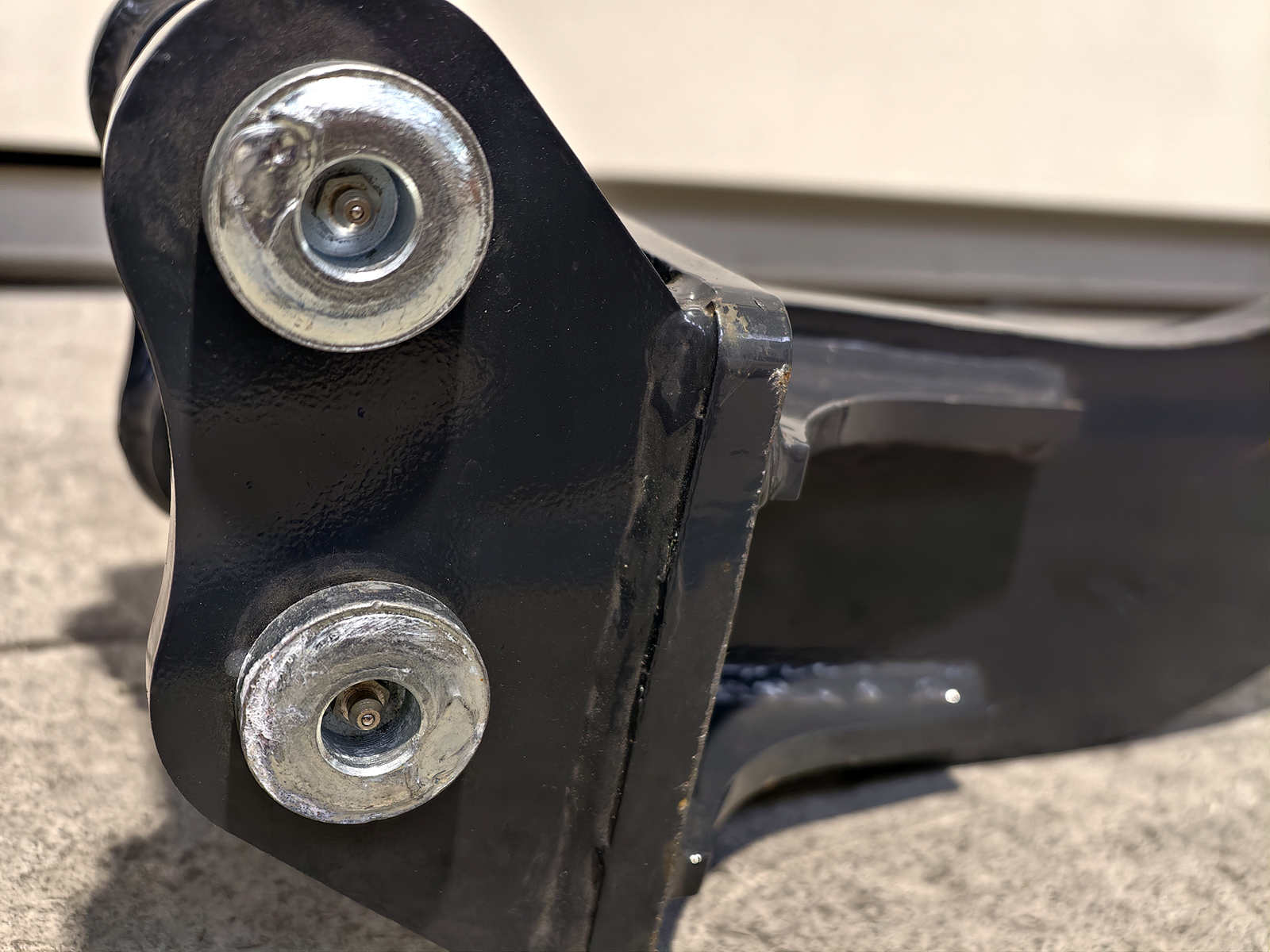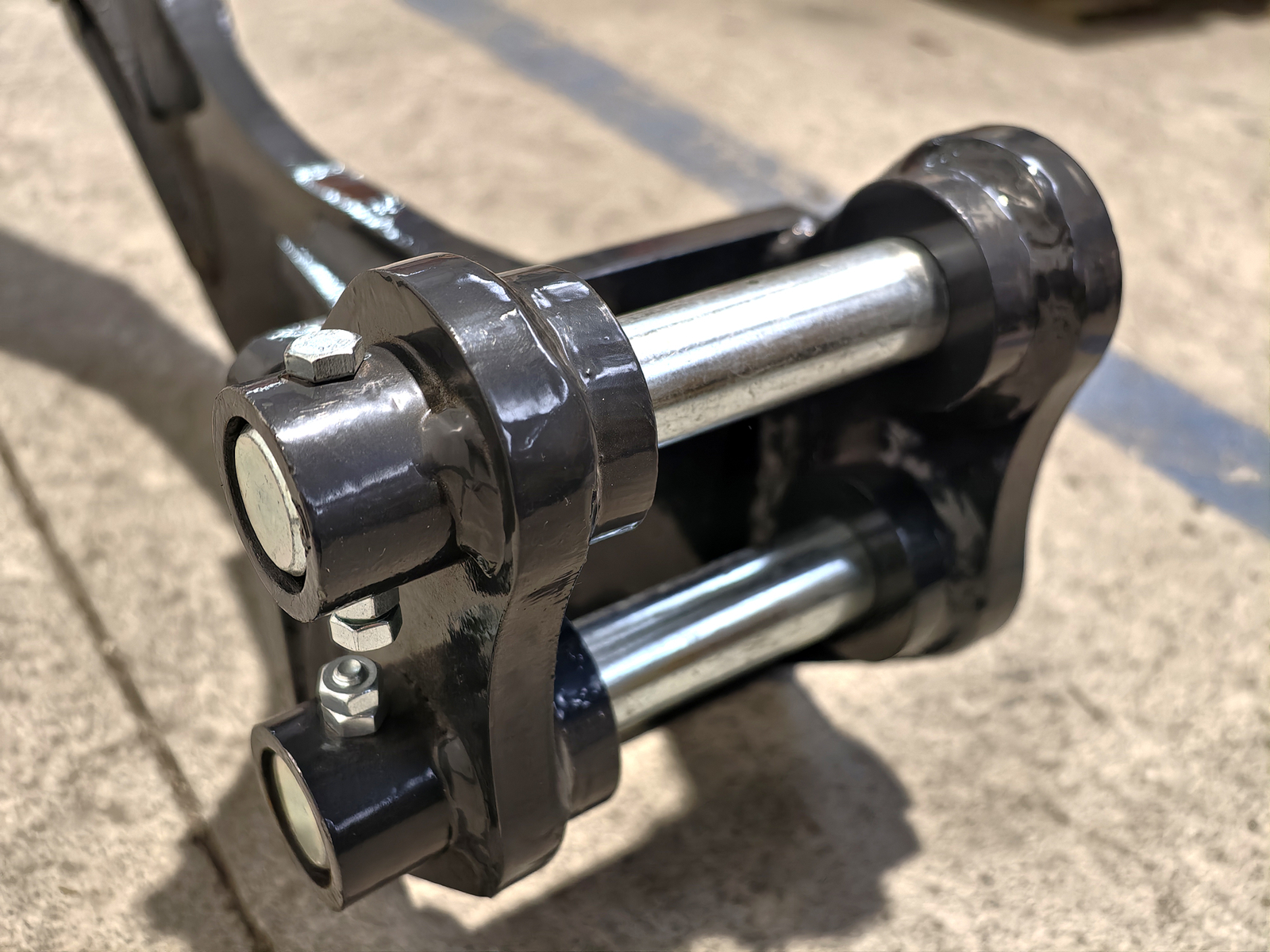 Lieferumfang umfasst ein Paar Befestigungsbolzen Ø30 mm mit Schmiernippeln, für eine korrekte Montage und optimale Schmierung im Betrieb.