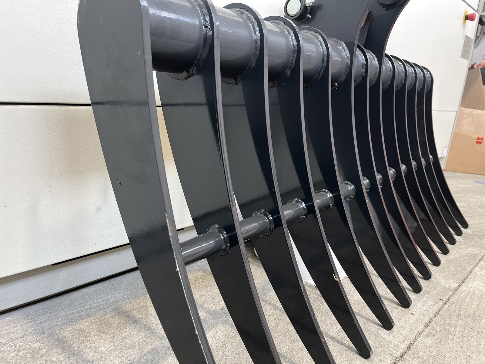 Dank der offenen Bauweise mit verstärkten, hoch eindringenden Zinken können Erde, Steine, Wurzeln und Pflanzenreste effizient getrennt werden, ideal für Bodenaufbereitung, Flächenräumung, professionelle Landschaftspflege und Grünflächenpflege.