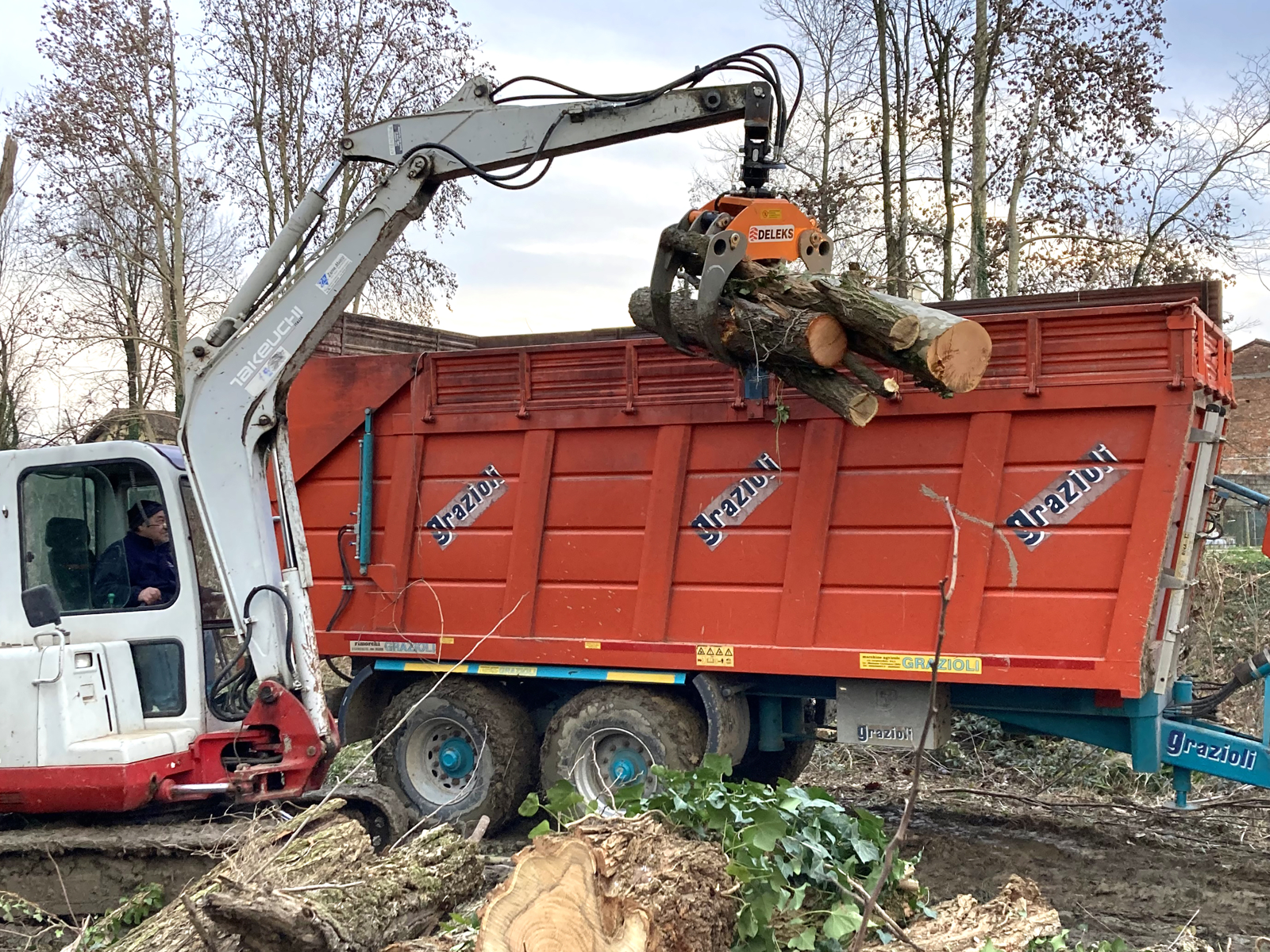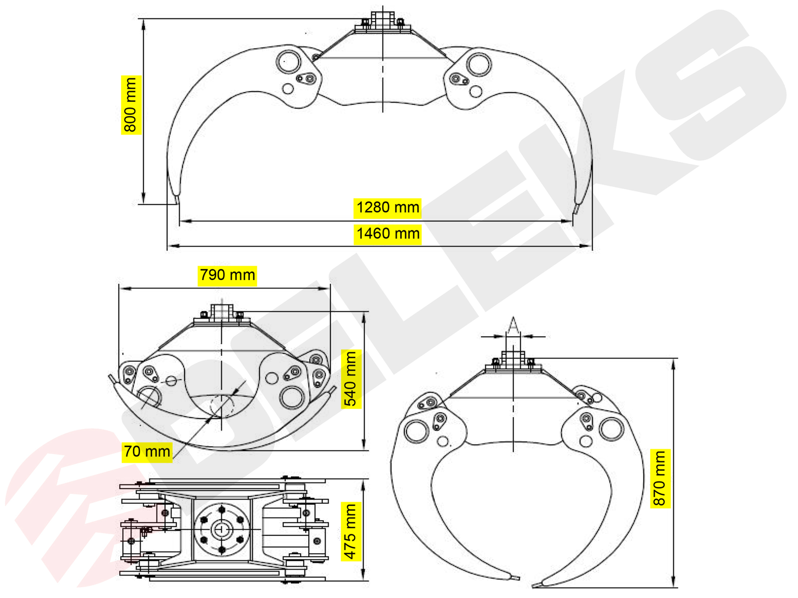 Graifer pentru bușteni - capacitate 2,0 Tone și Rotor Lombarda Ingranaggi GR30F 360 ° - DELEKS - graifer cu rotor cu flanșă, pentru macarale, excavatoare și încărcătoare pentru gunoi.