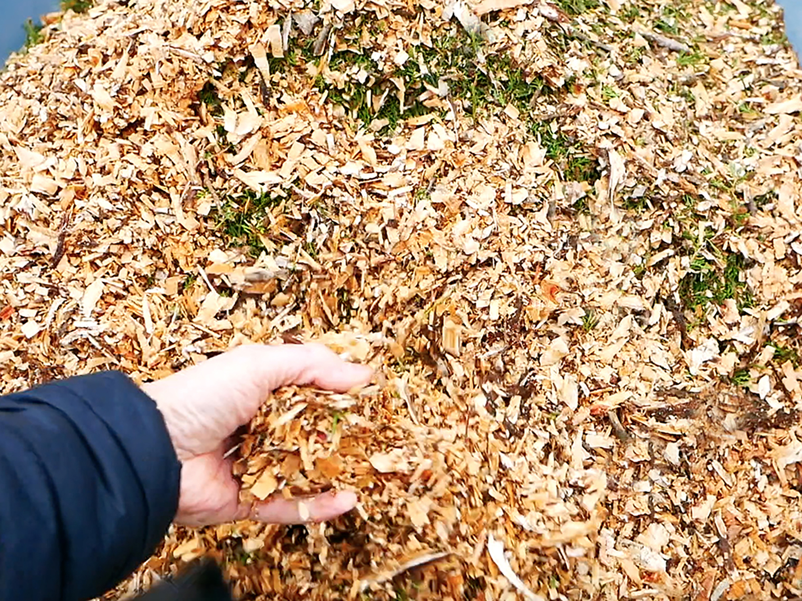 Materialul rezultat este relativ uniform, aproximativ 1 cm, în funcție de tipul și umiditatea materialului procesat.