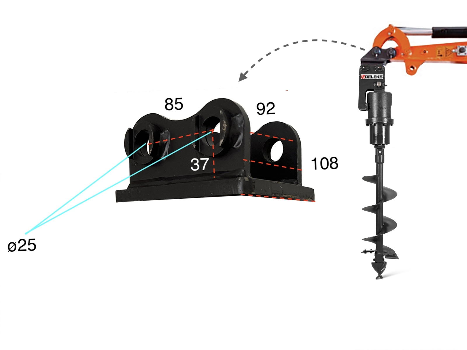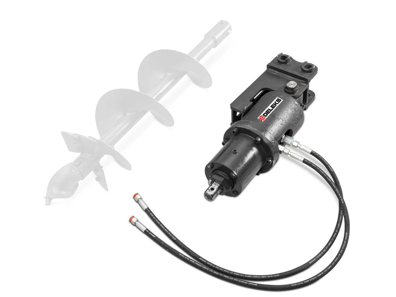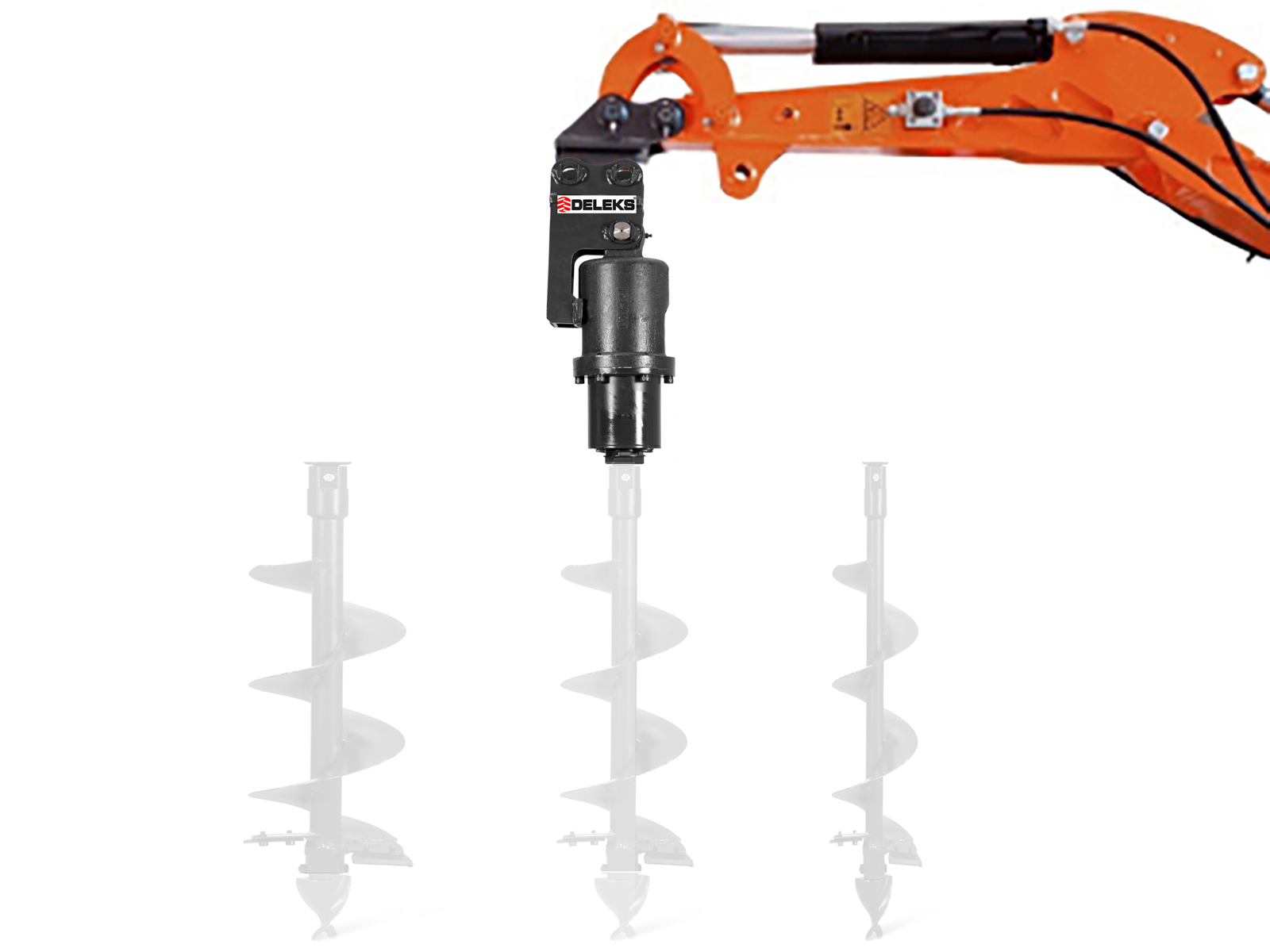 La tarrière / Rotateur hydraulique DELEKS® convient pour les mini-pelles, chargeuses sur pneus ou chargeuses frontales.