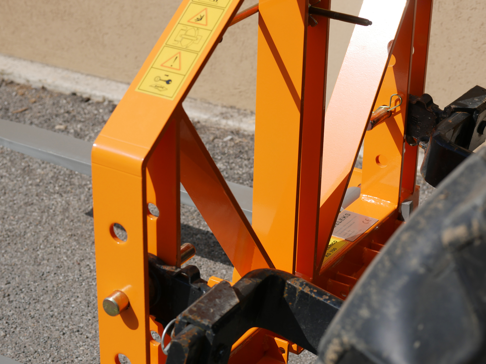Furcă pentru paleți D-700 pentru încărcarea și manipularea paleților. Permite încărcarea de 700kg aprox. Proiectată cu o structură solidă pentru a maximiza potențialul tractoarelor de dimensiuni medii, izodiametrice, cu șenile sau fructile, precum New Holland TK4000, T3030, T4F, John Deere seria 4-5, Landini Mistral, Deutz-Fahr, Goldoni Euro, Energie, Lamborghini Ego 45-55, McCormick, Acelasi Delfino, Solaris sau Orchard, FIAT etc. Atac universal de 3 puncte Cat. 1-2. Conformitatea CE. Garanție 2 ani.