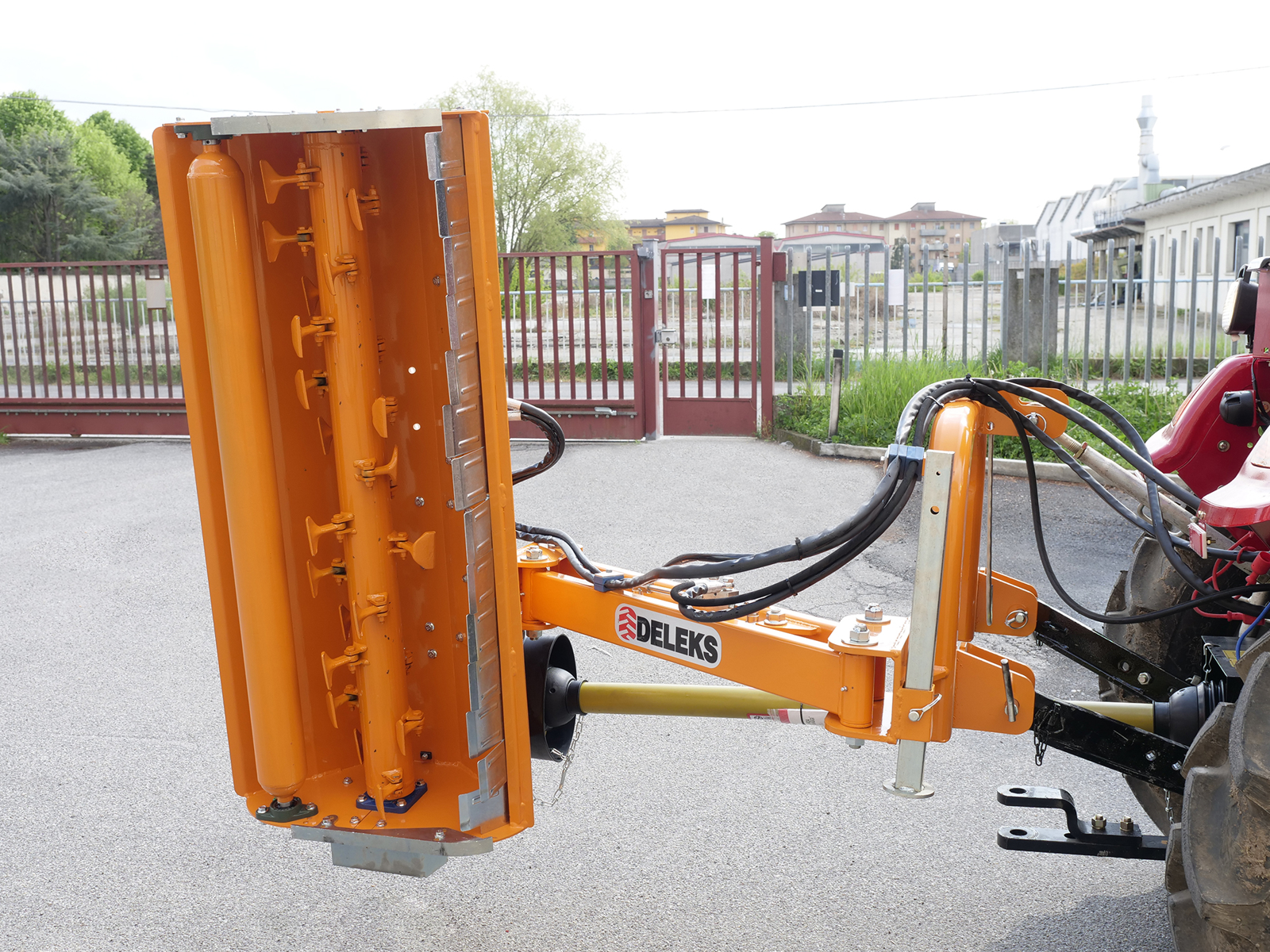 CLOSEMulti-use Sideshift mulcher 140cm / 200kg for Tractors 30-45Hp - DELEKS® VOLPE-140 - Can be hydraulically angled vertically (88º) or down (60º).