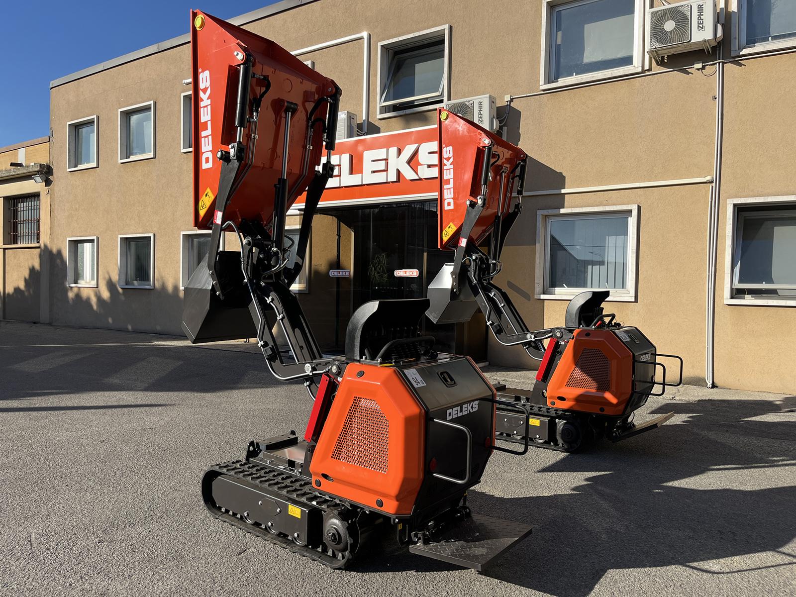 DELEKS® M8000-KUBOTA professional tracked self-loading mini dumper with hydrostatic transmission, high-tip dumper body, operator platform and Kubota diesel engine with electric start.