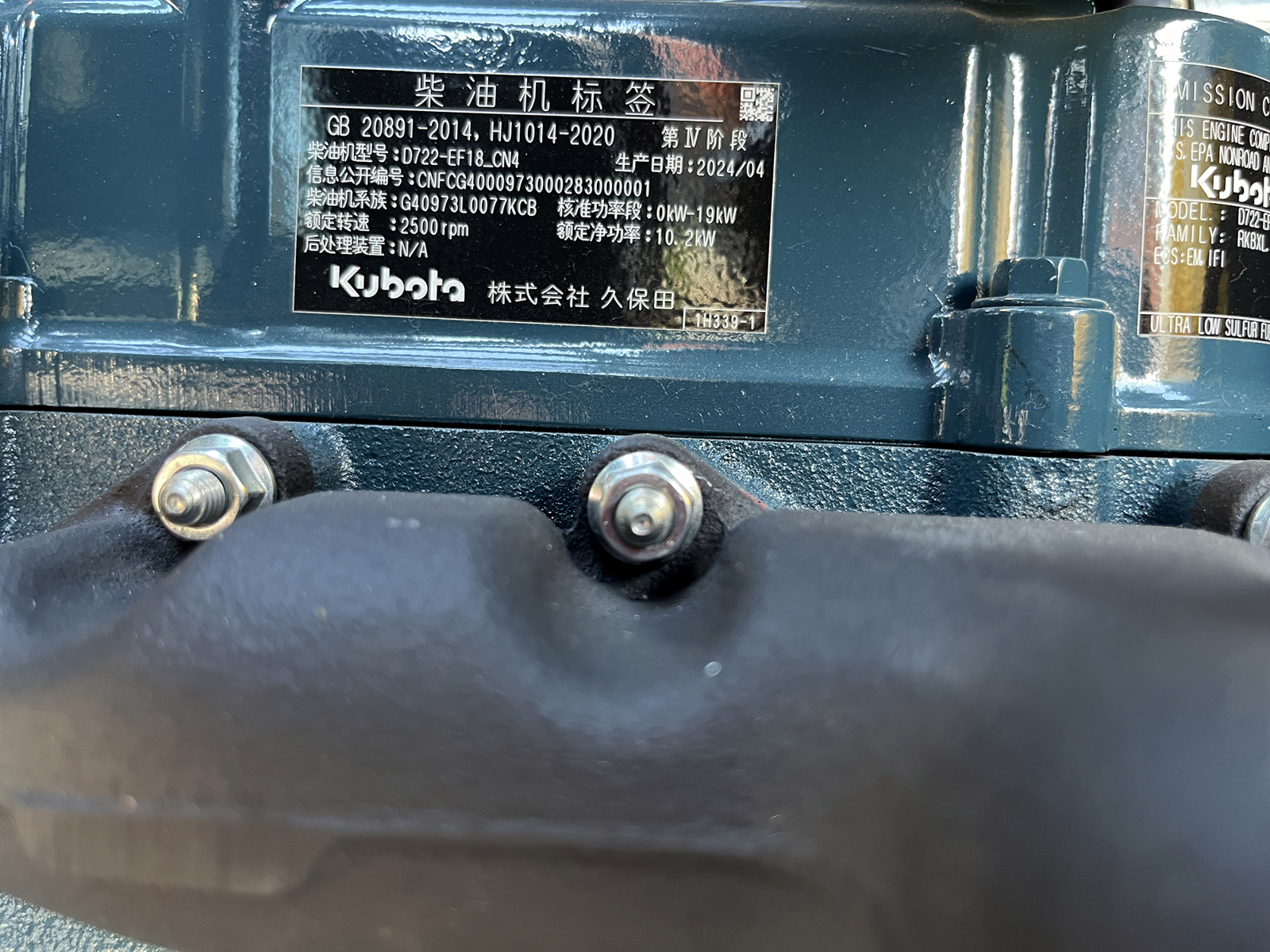 Kubota diesel engine for high reliability and durability
