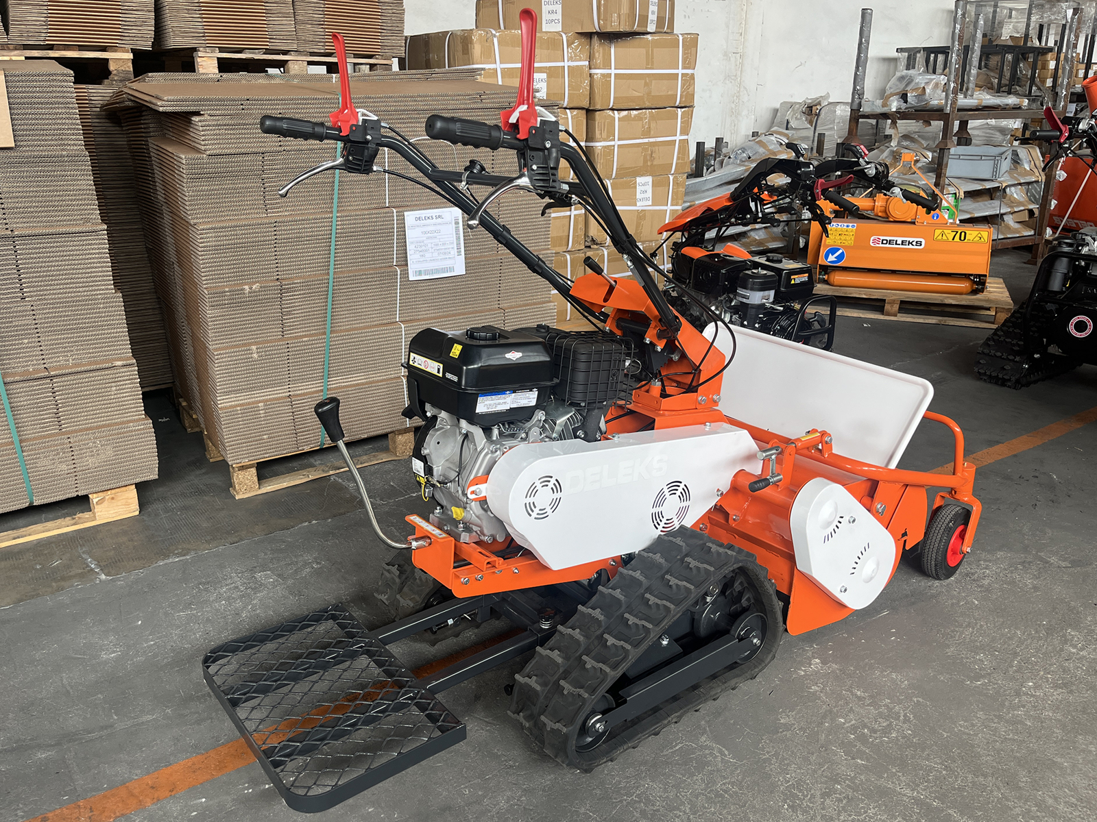 DELEKS® SMART-800-TR Schlegelmulcher auf Raupen für Hanglagen und hügeliges Gelände, Briggs&Stratton 10hp, 306ccm Motor, 70cm Schnittbreite, Elektrostart mit Schlüssel.