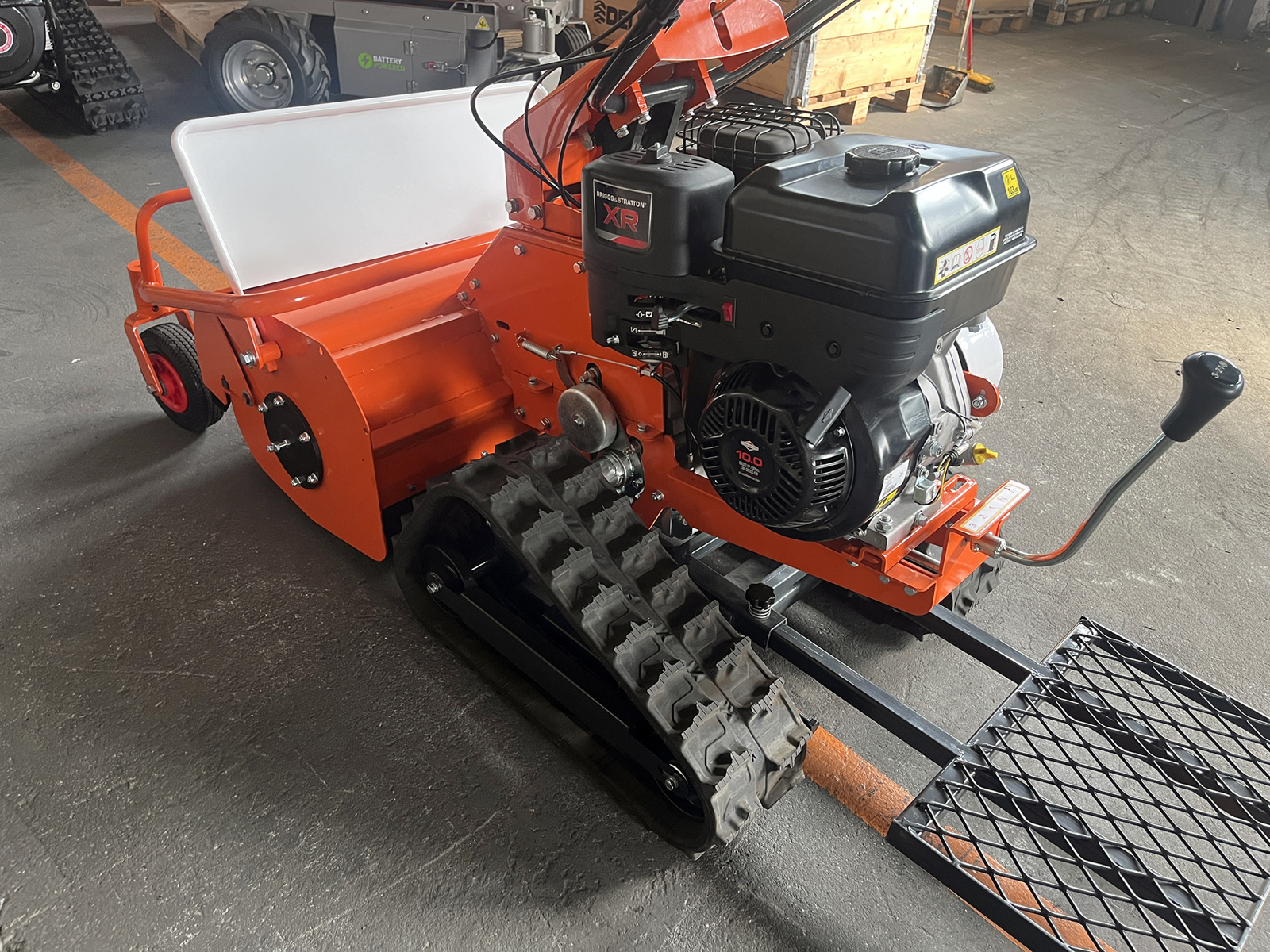 SCHLIESSENDELEKS® SMART-800-TR Schlegelmulcher auf Raupen für Hanglagen und hügeliges Gelände, Briggs&Stratton 10hp, 306ccm Motor, 70cm Schnittbreite, Elektrostart mit Schlüssel.