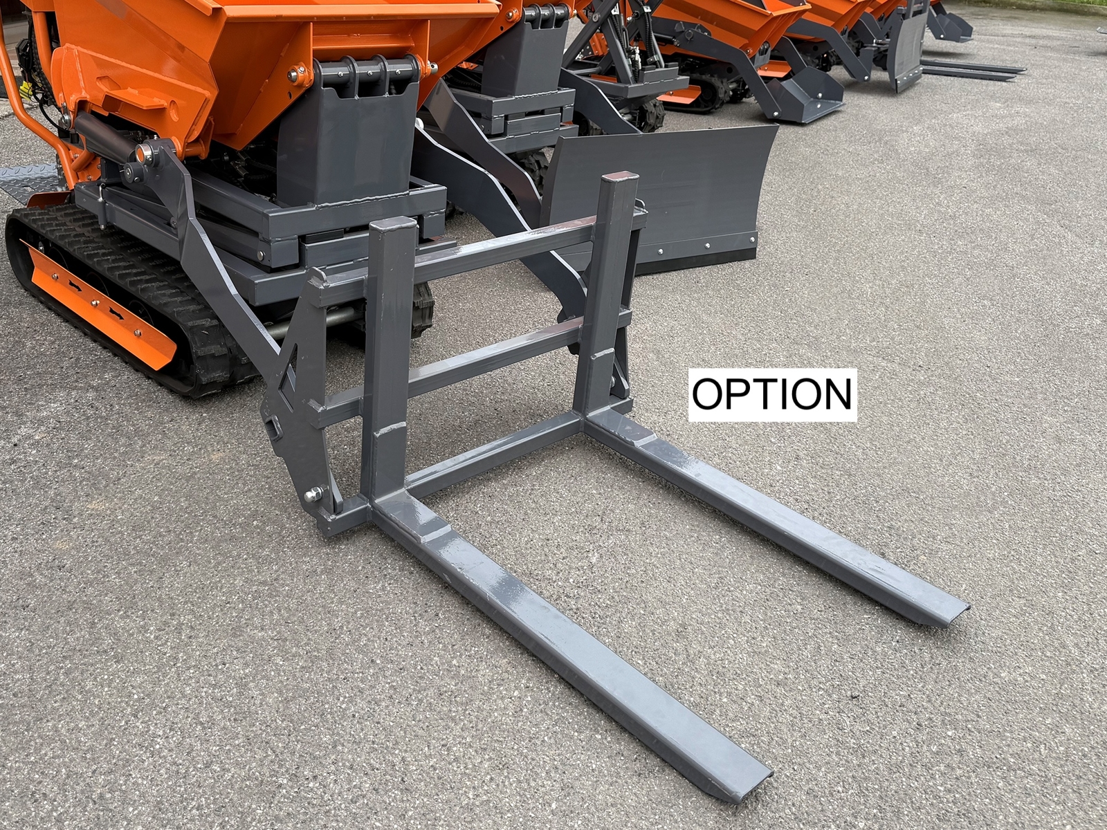 Compact high-performance tracked dumper designed for material handling with raised discharge for direct unloading into vans and trucks.