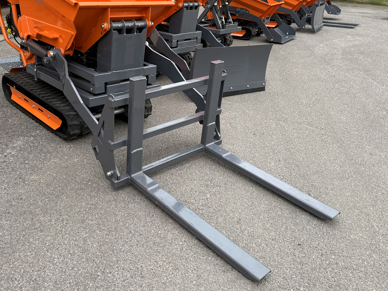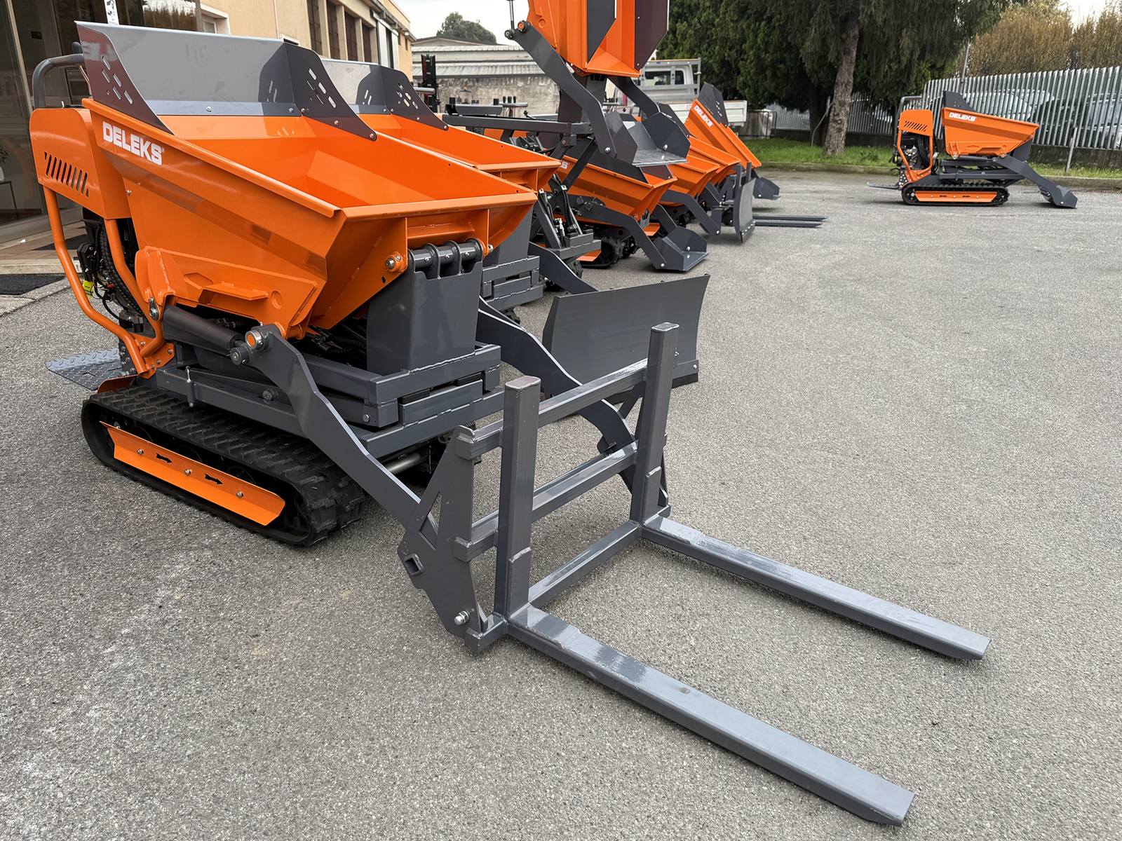 ЗАКРЫТЬВилы DELEKS® для мини-думперов V3000 и V3000H предназначены для перемещения поддонов и компактных грузов массой до 120 кг. Аксессуар устанавливается вместо стандартного ковша с помощью болтового крепления, без необходимости структурных изменений.