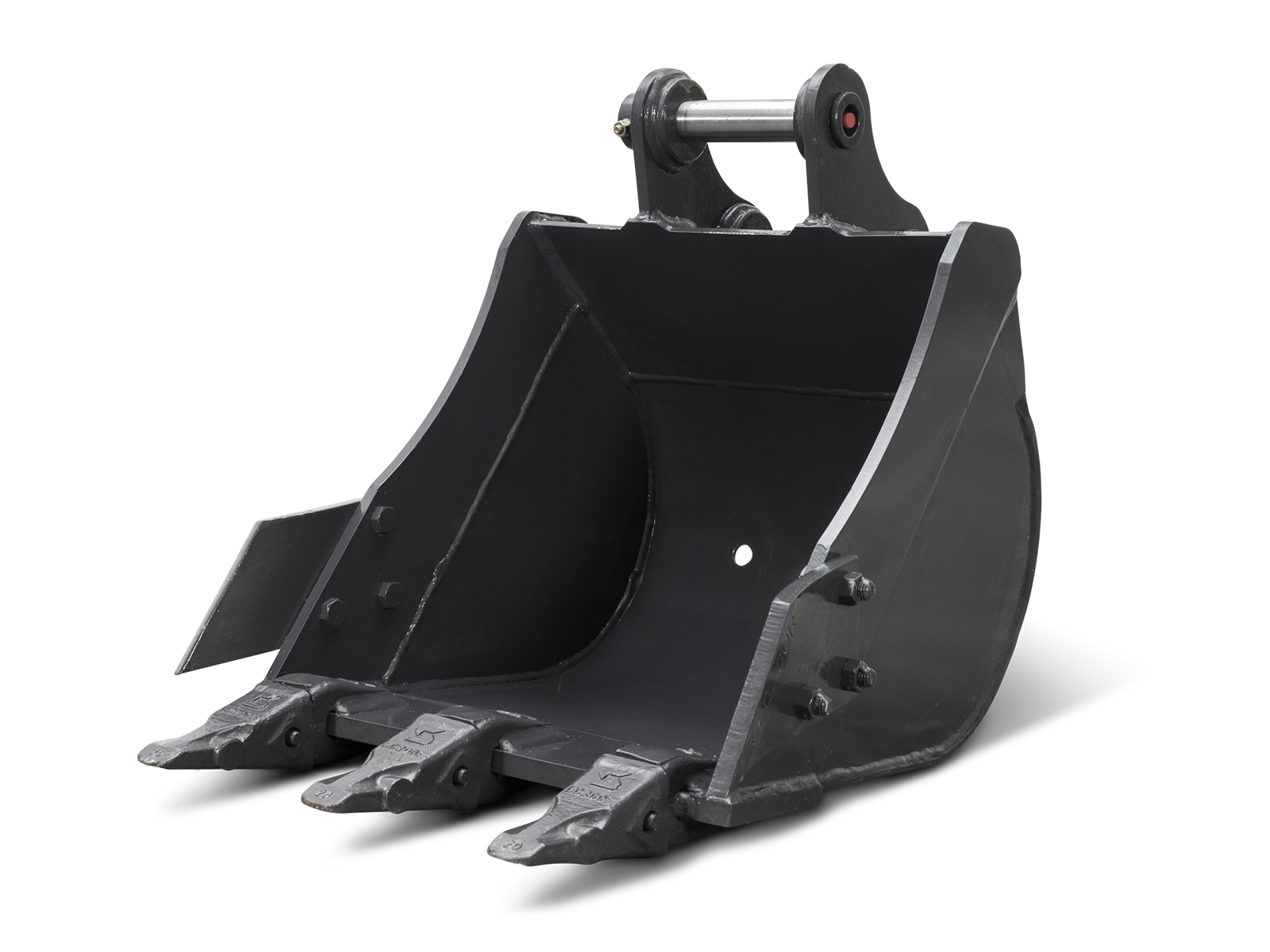 The bucket is fitted with 2 Ø40 mm pins with grease fittings, ensuring attachment stability, reduced wear and smooth movement.