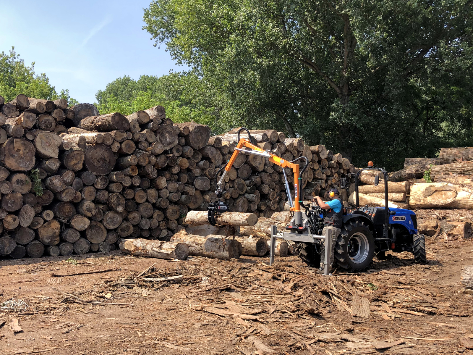CLOSETractor mounted timber crane, forestry crane - DELEKS®- Hydraulic parts MADE IN ITALY - DK10 Log Grapple with GR10 Rotor Lombarda Ingranaggi®