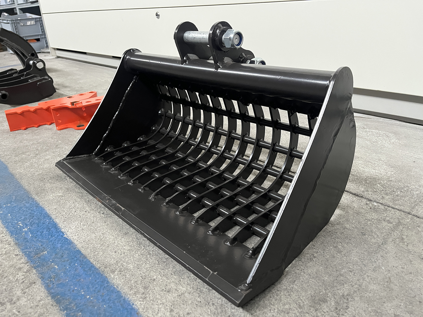 Stone rake bucket / screening bucket designed for DELEKS® M80, M90, M100, M100se, M130 mini excavators.