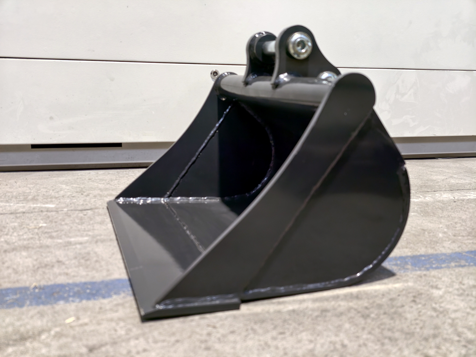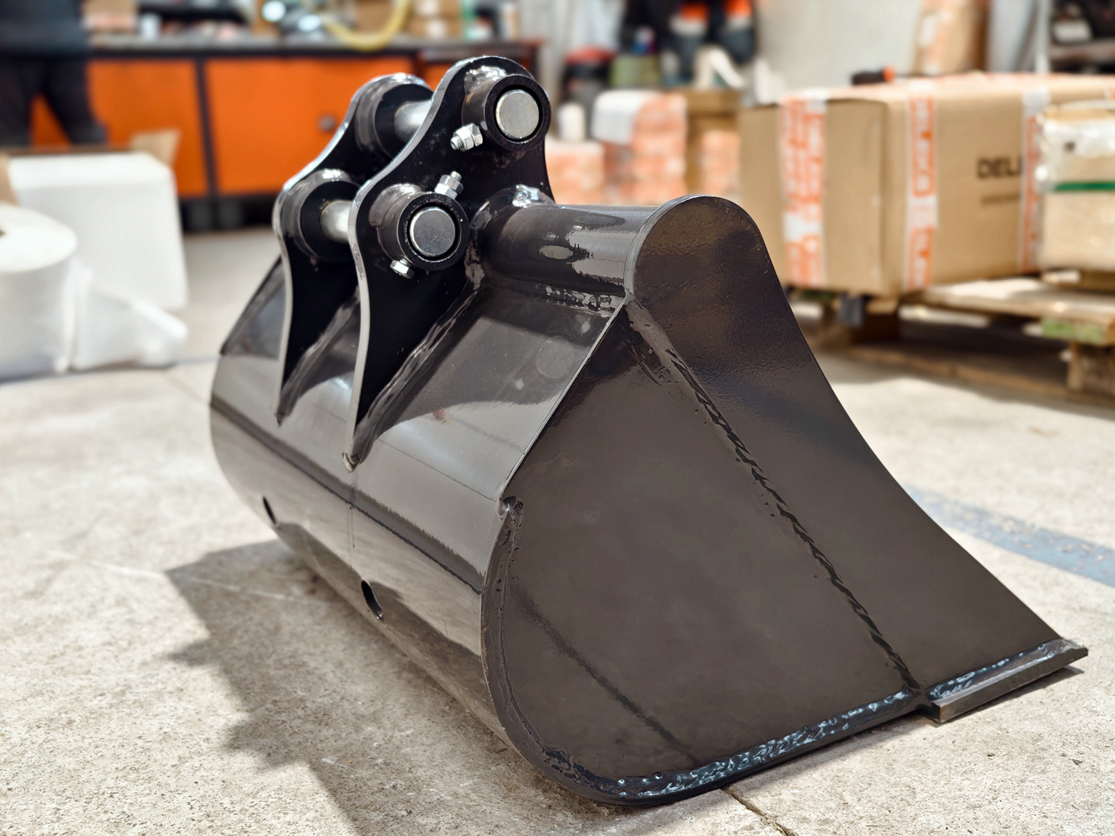 60 cm bucket designed for S180 mini excavators, ideal for digging, material handling and leveling. Made of high-strength structural steel with reinforcements in high-wear areas. The cutting edge profile and internal geometry are engineered to optimize soil penetration and ensure efficient material discharge. Continuous welds and the reinforced mounting plate guarantee excellent torsional rigidity even under heavy-duty conditions.