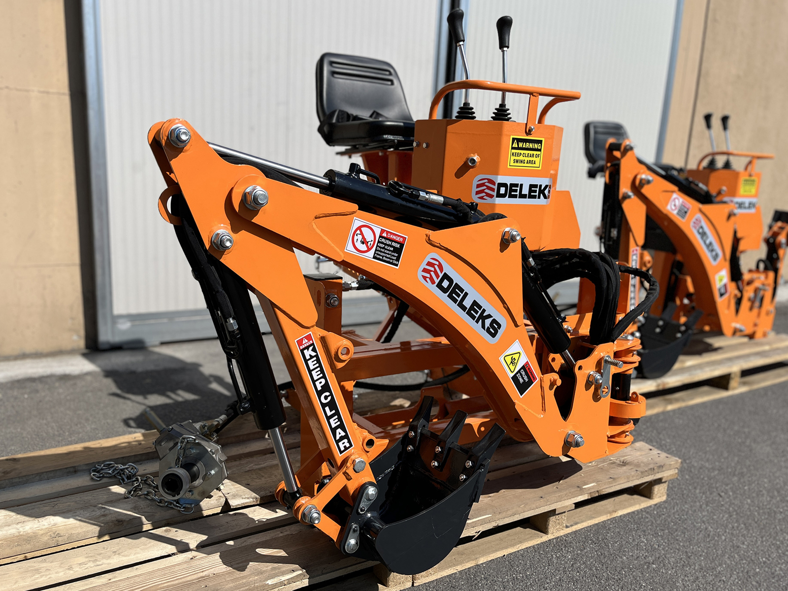 CLOSEMini backhoe for universal compact tractors - DELEKS® DRS-1000T - 358 kg - Side shift frame with manual locking - Oil system.