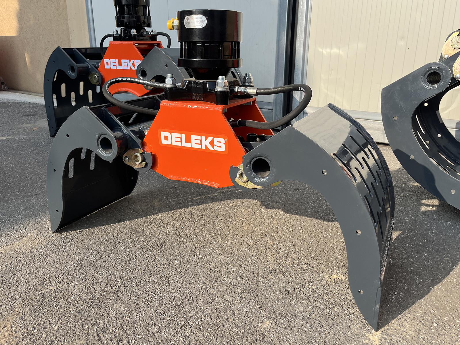 FERMERPince de Tri DELEKS®, Pince de Démolition DKP10 avec Rotateur Lombarda Ingranaggi GR-30FF, Pince d'Enrochement pour mini-pelles de 0,8 à 2,5 tonnes et grues forestières, avec ouverture de 90cm et capacité de 150kg.