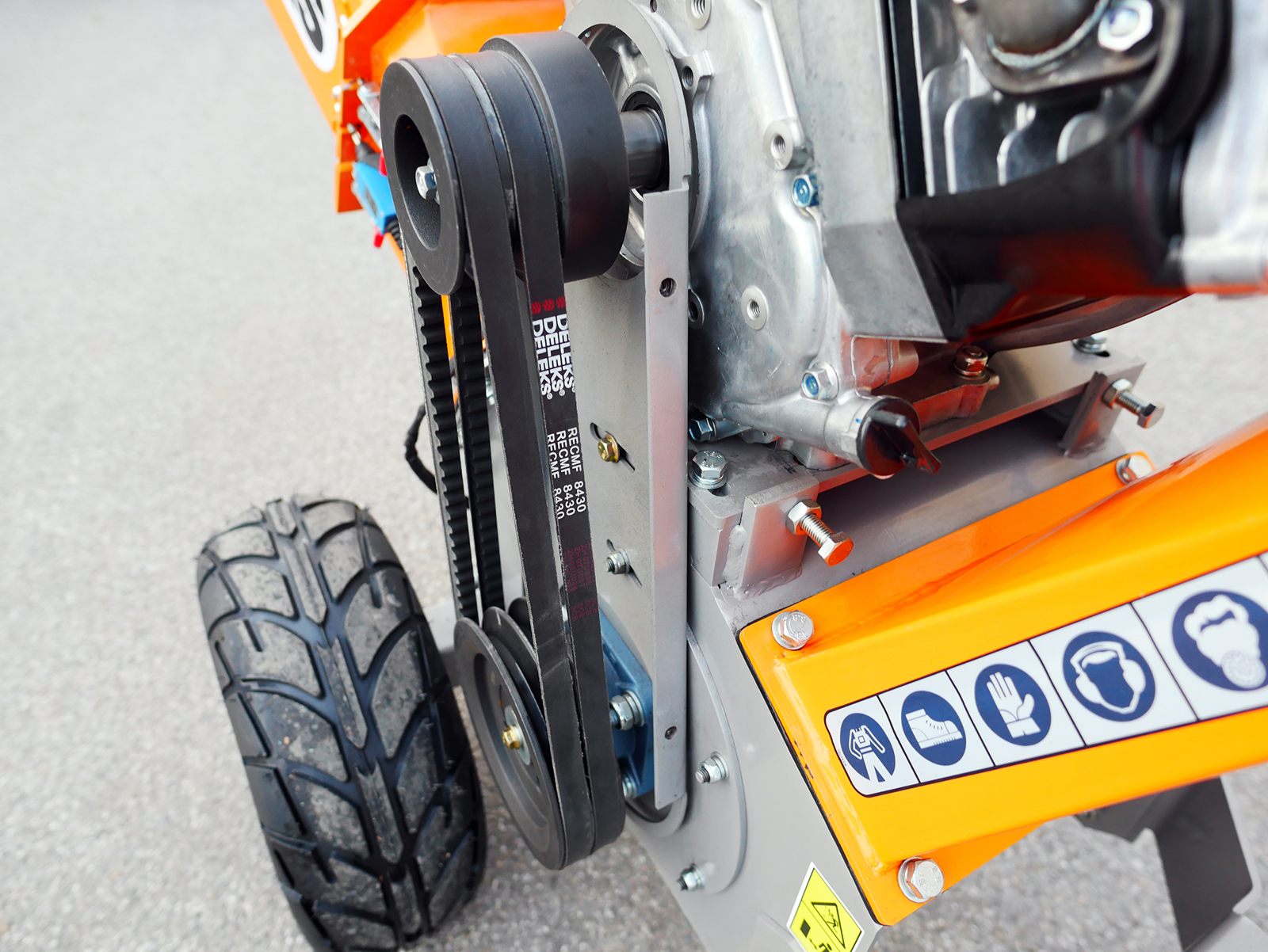 Машина оснащена бензиновым двигателем Briggs & Stratton XR2100, 4-тактным, объёмом 420 см³, с электрическим запуском с ключа и ручным аварийным запуском, известным своей надёжностью, прочной конструкцией и стабильной работой под высокой нагрузкой.