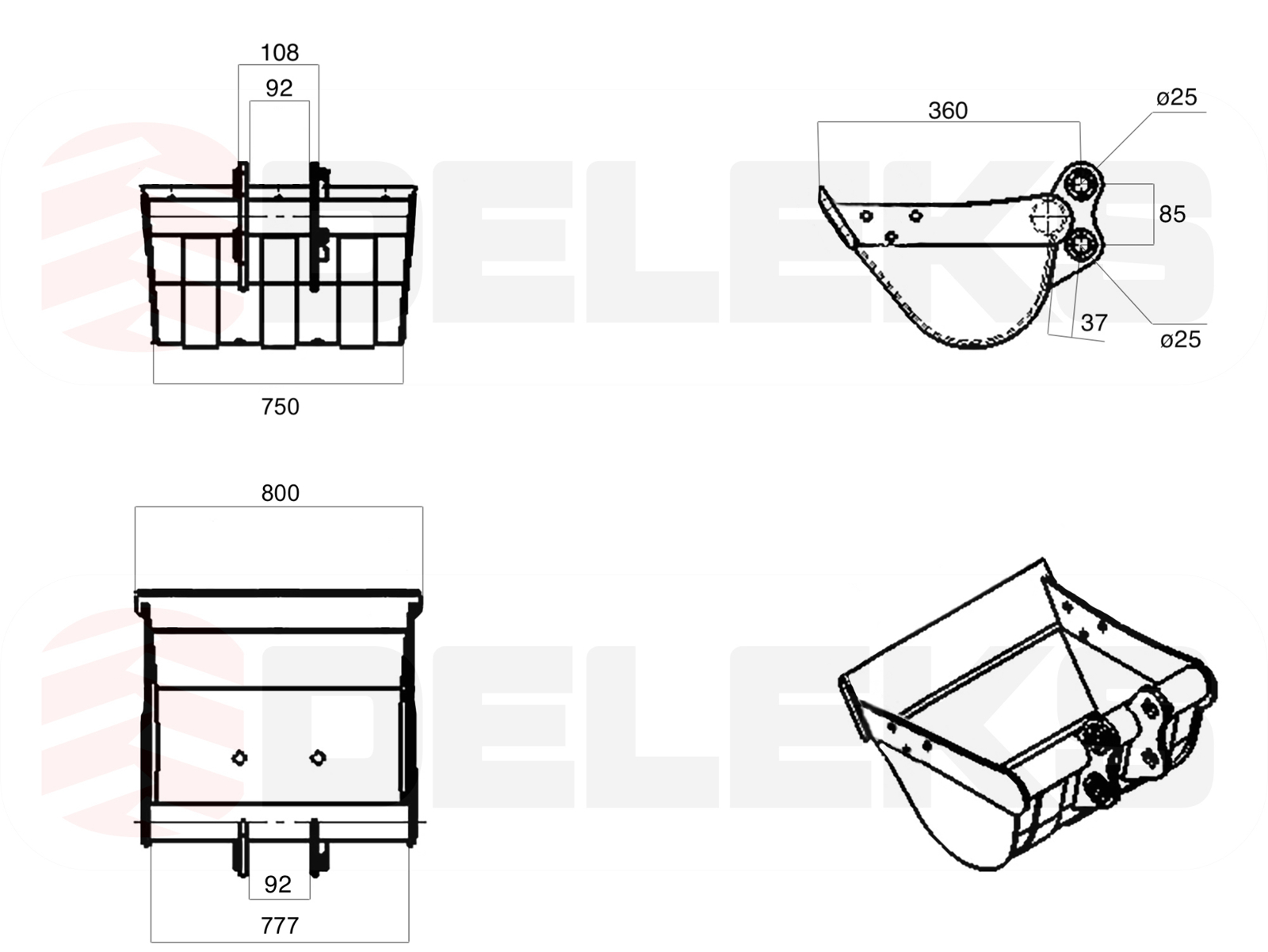 Godet de Curage Inclinable / Orientable, 80cm, pour mini pelles M80 - M100 DELEKS®