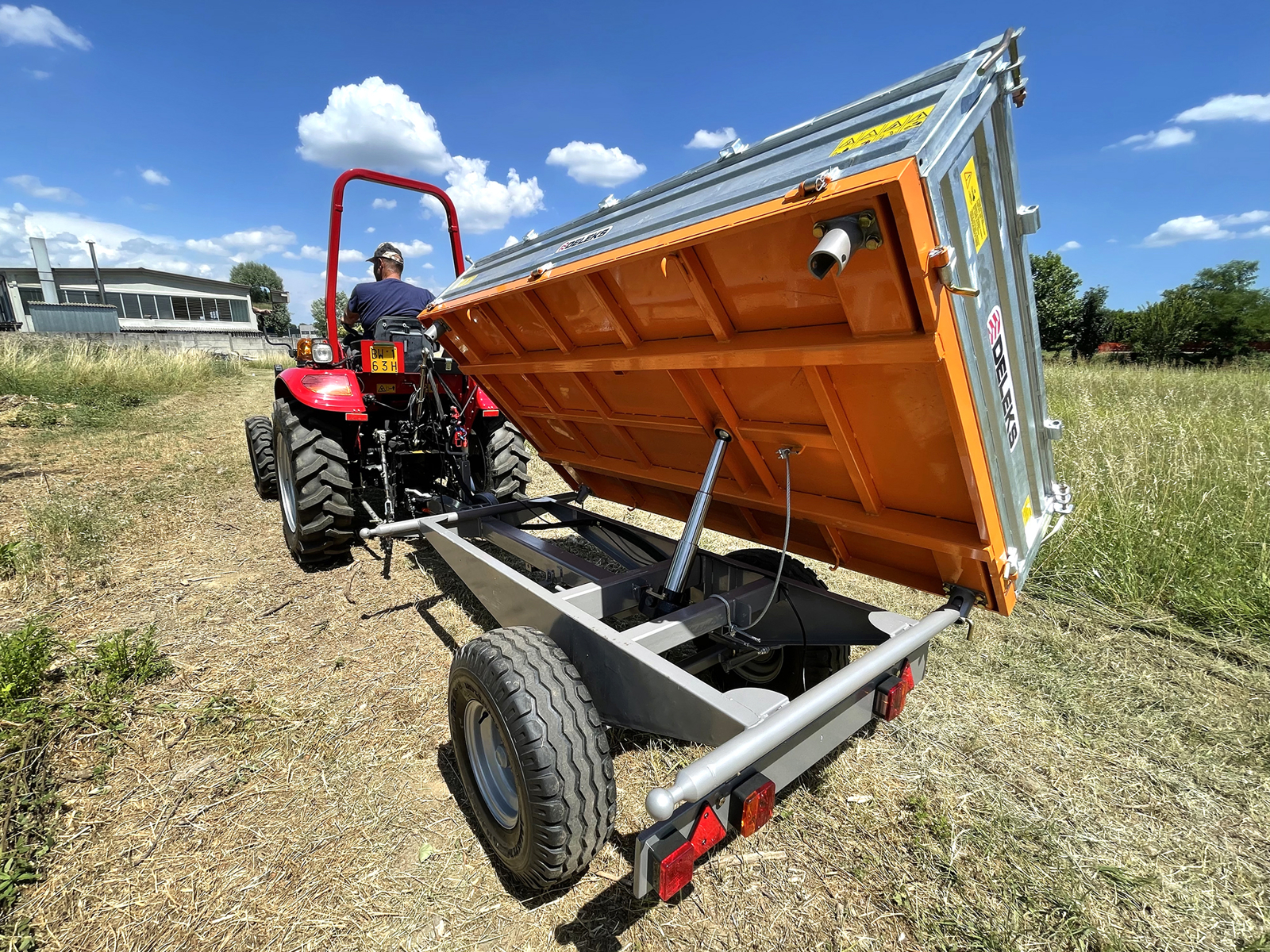 Remorcă agricolă DELEKS® omologată pentru utilizare rutieră, Corp 140x240cm - Basculare hidraulică trilaterală - Capacitat2,0 Tone.