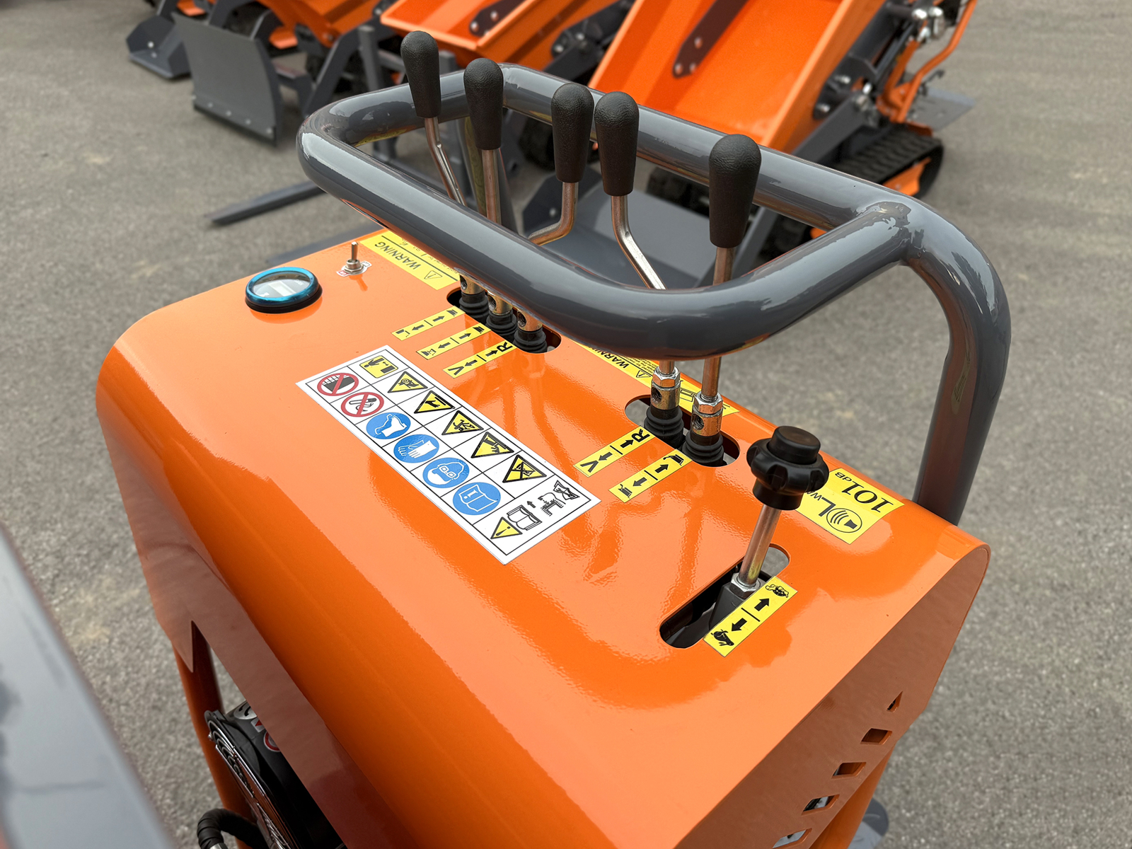 DELEKS® V3000HBS mini-dumper chenillé professionnel autochargeant avec déchargement en hauteur, transmission hydrostatique, plateforme opérateur et moteur Briggs & Stratton avec démarrage électrique.