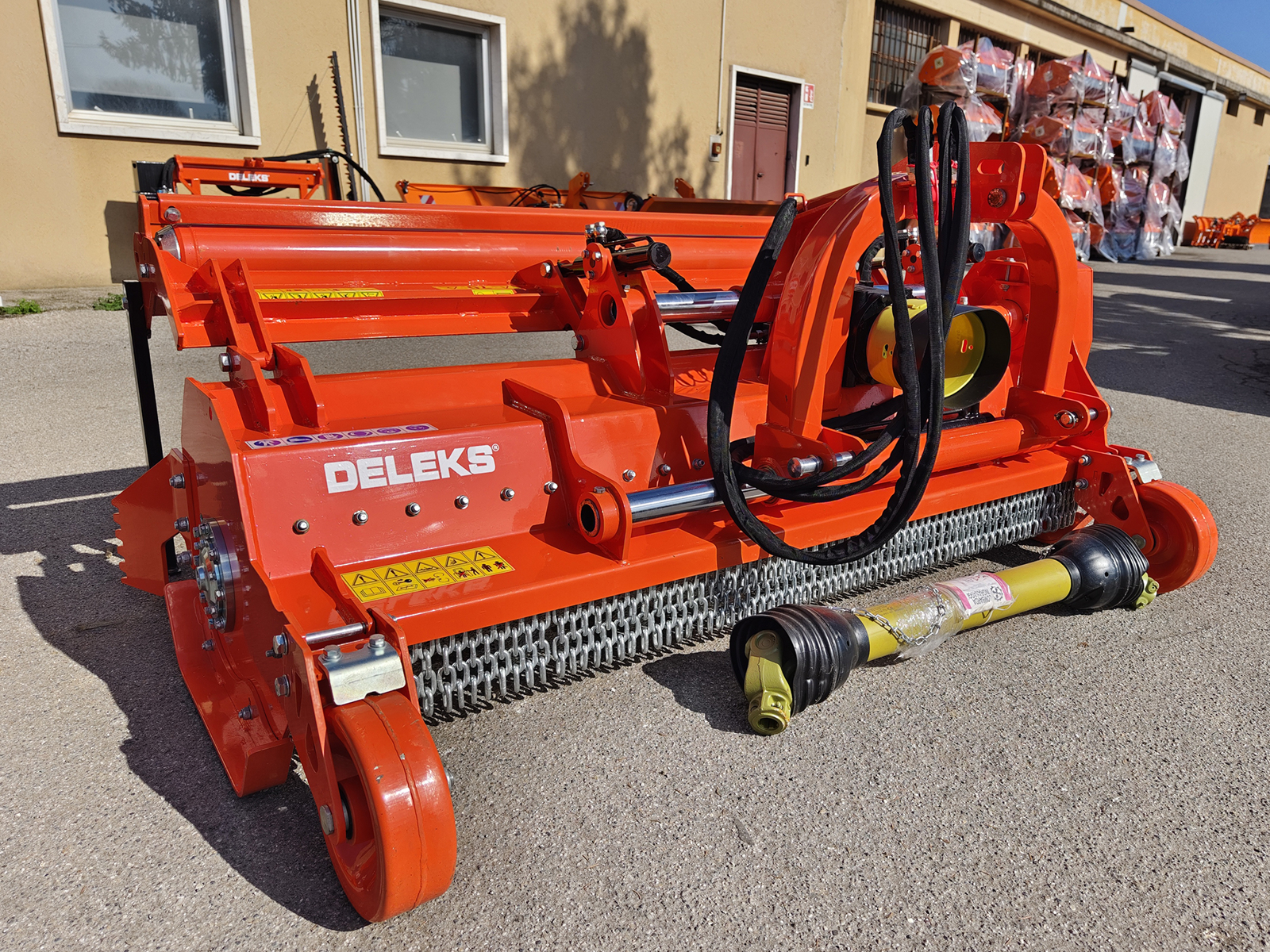 DELEKS® GORILLA-200 Schlegelmäher schwerer Ausführung, ideal für das Mulchen von Weinbergen, Obstgärten, Olivenhainen und Holzmaterial bis zu Ø 15 cm. Hydraulischer Antrieb und Kardanwelle mit Sicherheitsbolzen.