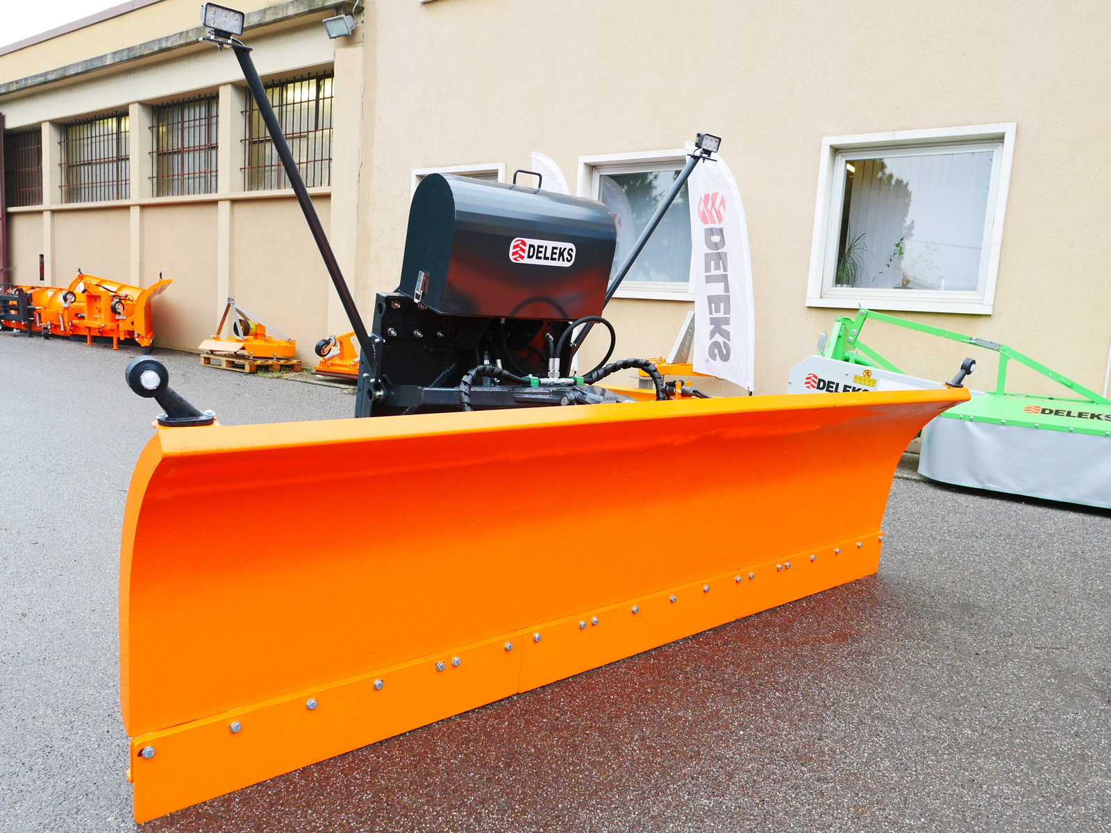 Снежный отвал фронтальный 2,6 метра DELEKS - 490 кг - крепежная плита для сельскохозяйственного трактора - гидравлические подъем и ориентация - 3 стальных или резиновых секции.