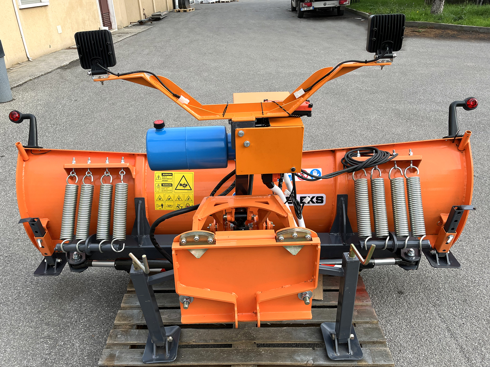 ÎNCHIDELamă deszapezire frontală DELEKS pentru camioane sau camionetele de munte - 220cm - cu placă de fixare universală. Orientarea și ridicarea lamei hidraulice.