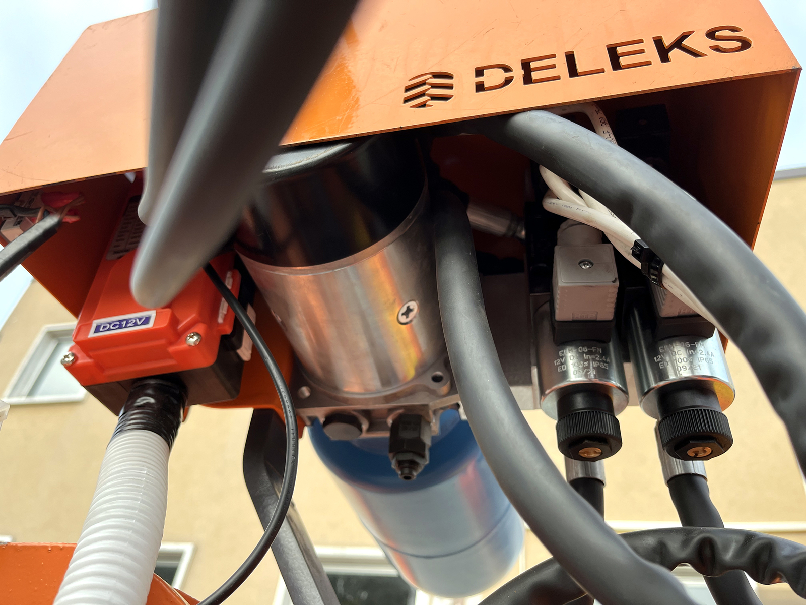 Conducte hidraulice care leagă cele 3 pistoane cu unitatea de comandă.