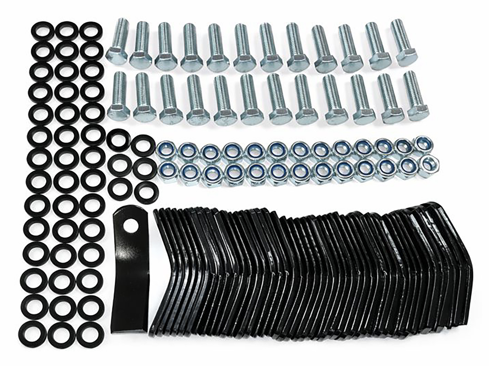 Set complet de 48 de cuțite pentru tocătorul ZFM100, inclusiv piulițe și șuruburi.