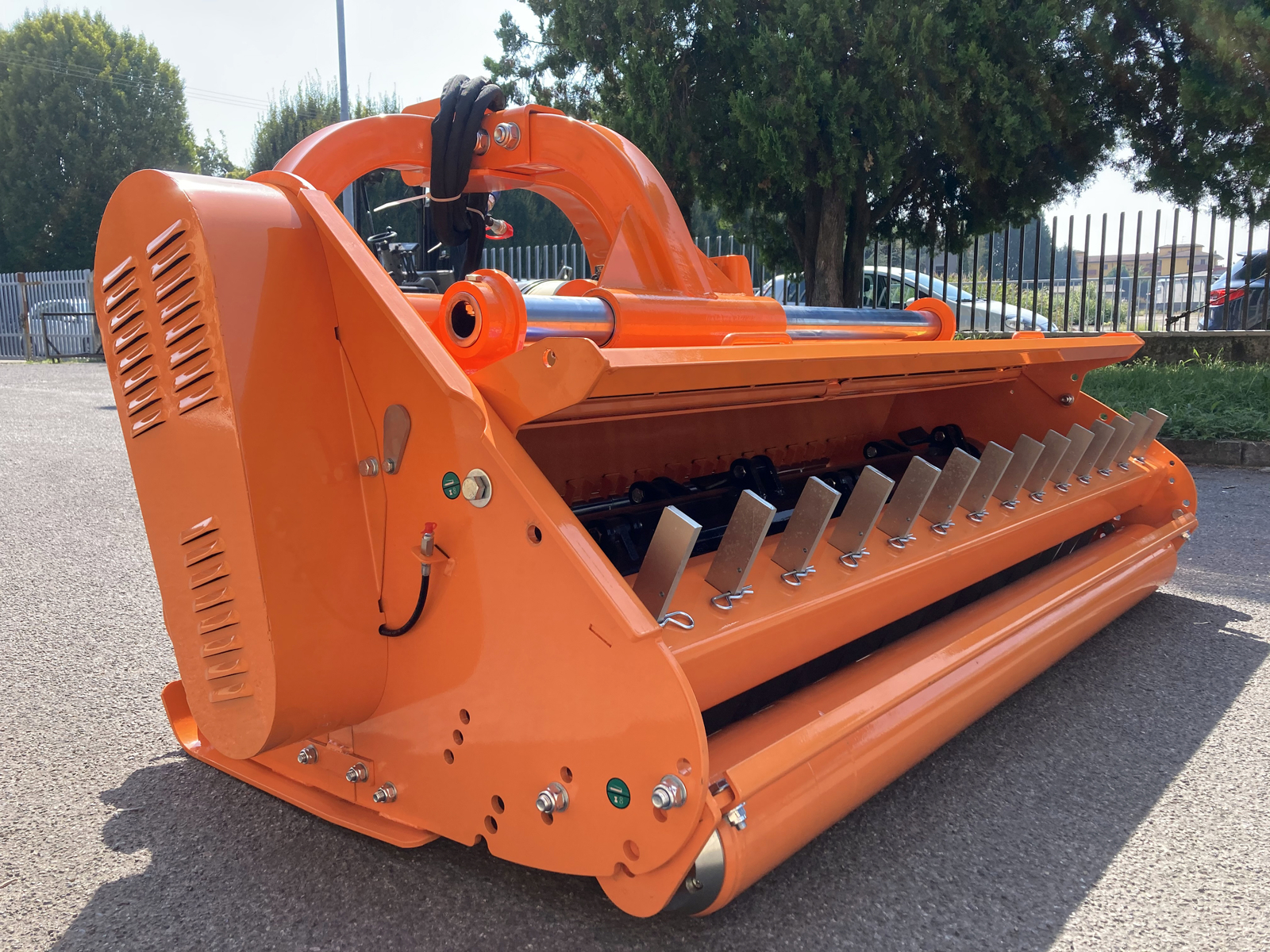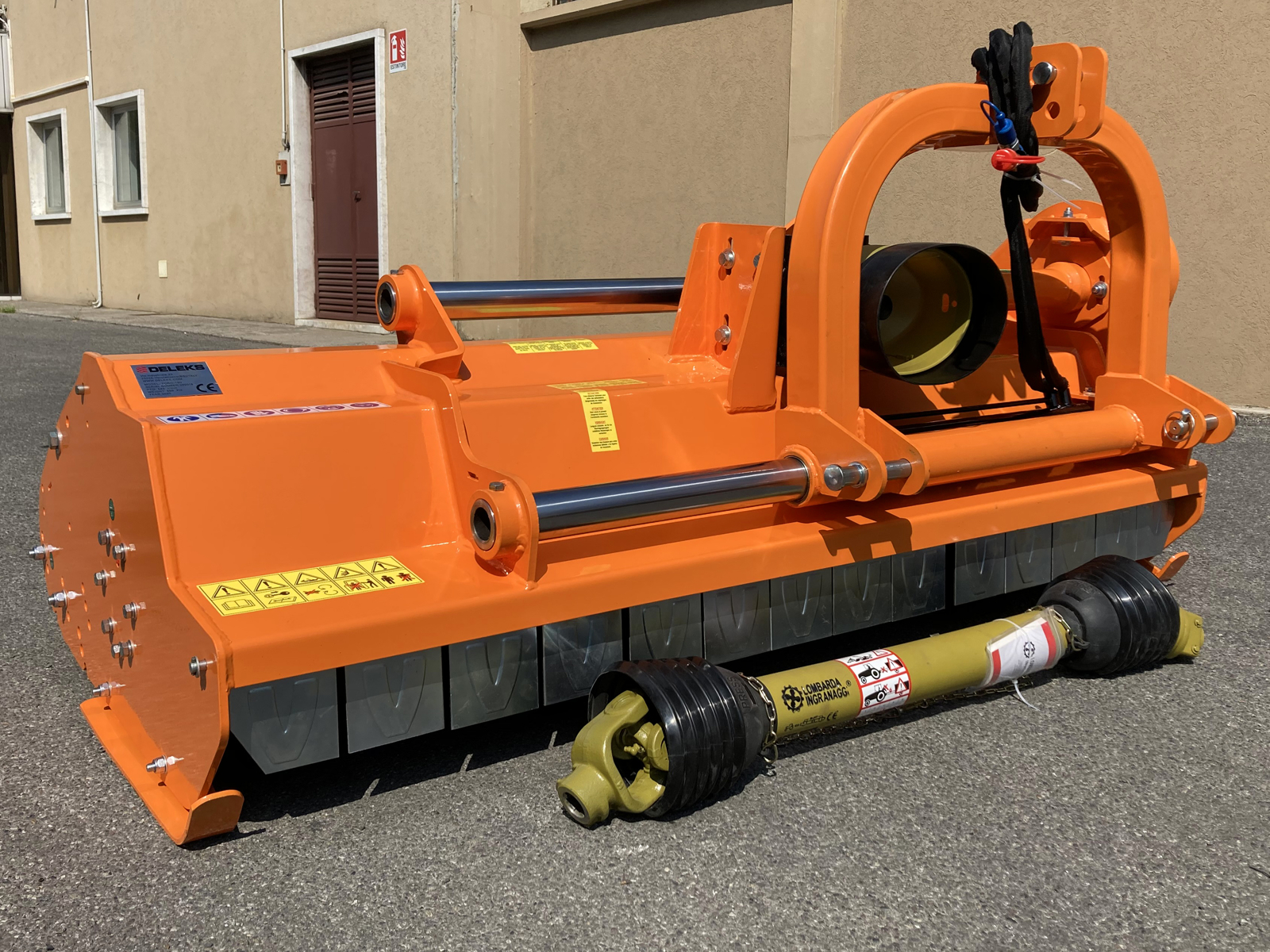 FERMERBroyeur déportable à marteaux DELEKS® TORO - 690kg. Série lourde pour tracteurs de type Same, Landini, Fiat, avec déport hydraulique et cardan CE avec boulon de sécurité.