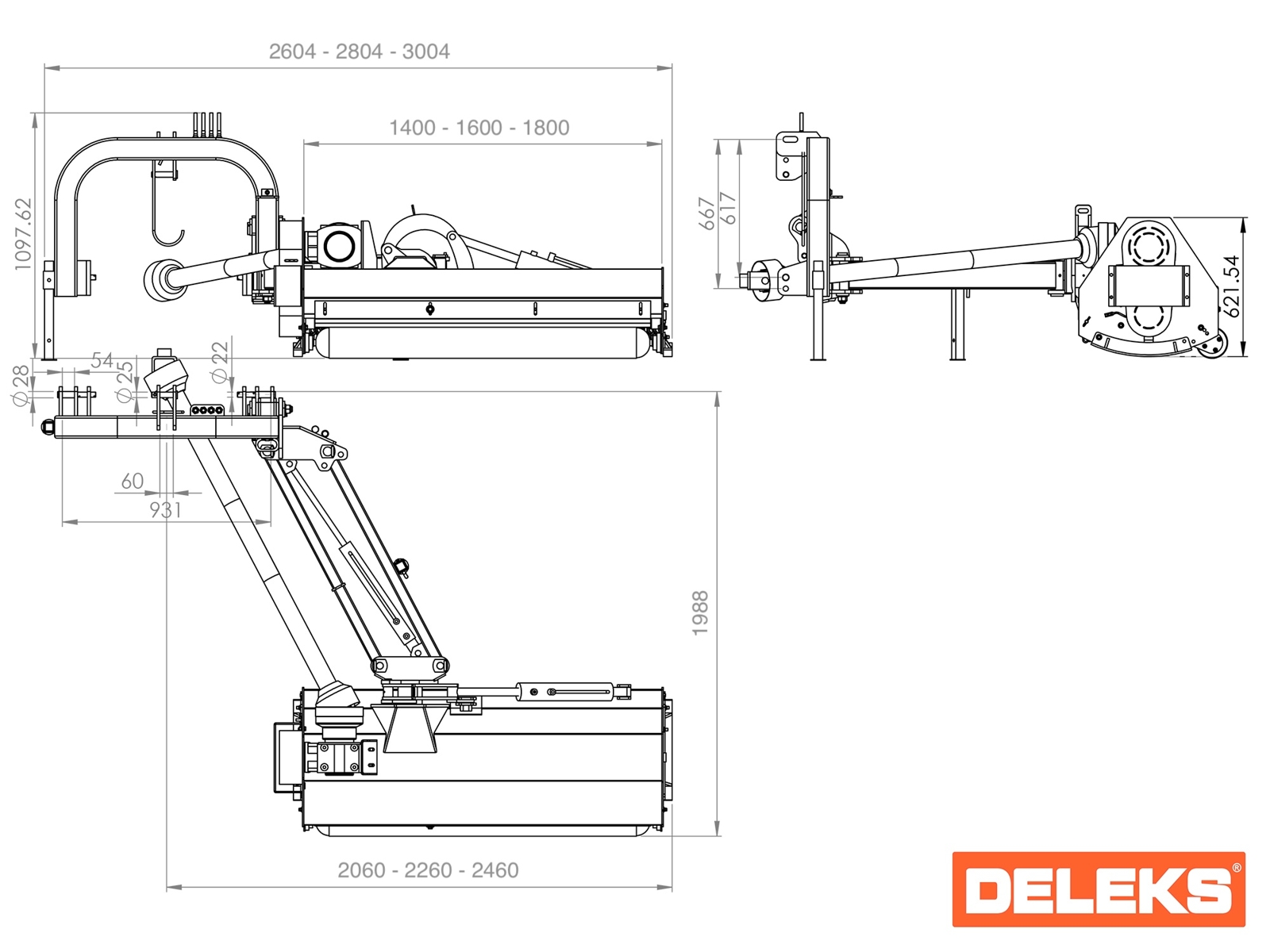 Sideshift Flail Mower 452kg / 140cm, Offset Side Mulcher For Tractors - DELEKS® LEO-140 - Internal Gearbox - Pto shaft CE included.