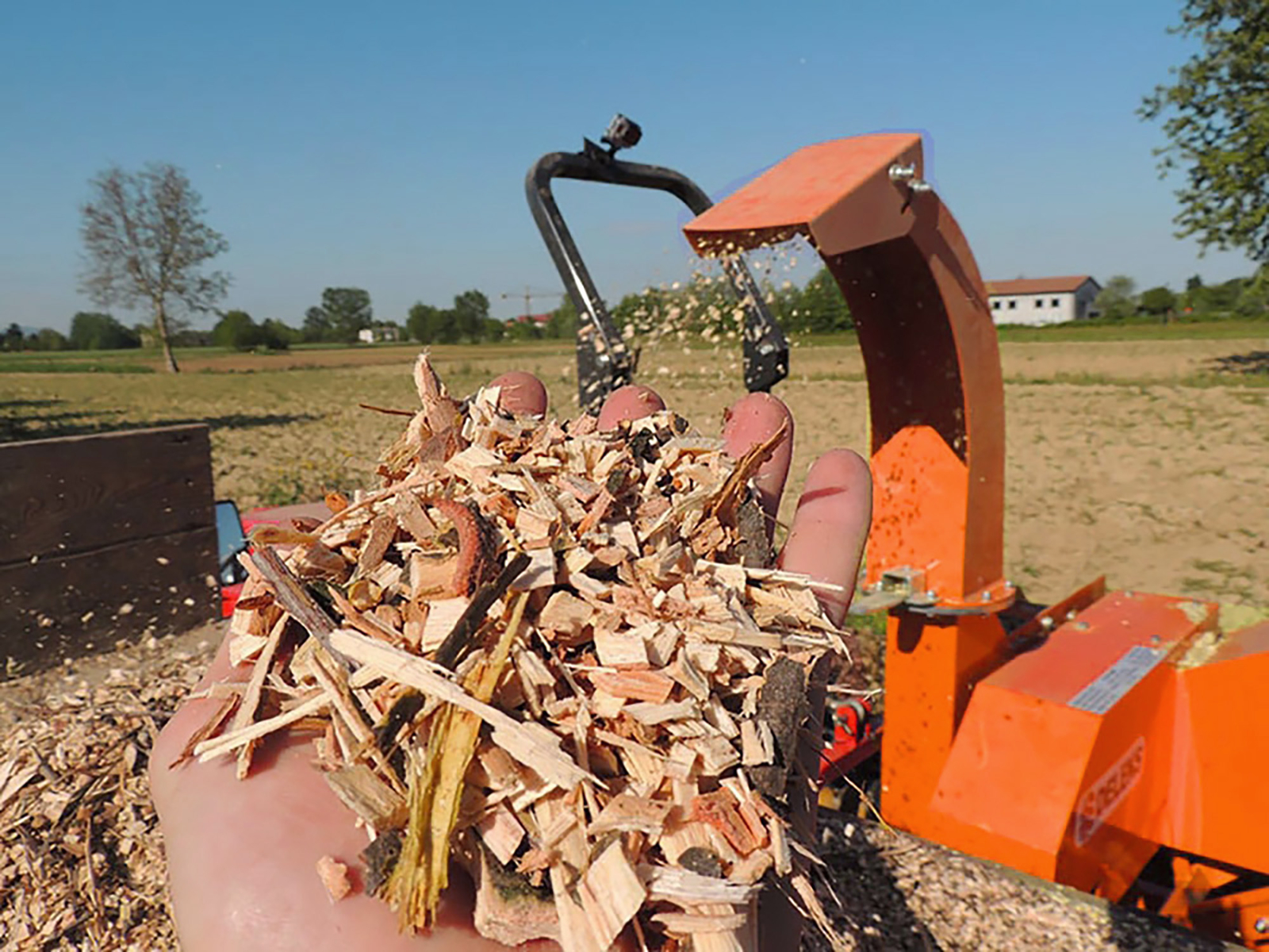 Scheibenhäcksler, zum zerkleinern verschiedenster Grün- und Trockenhölzer bis 10 cm Durchmesser. Die dadurch entstehenden Holzhackschnitzel sind bestens zur Verbrennung in den dafür vorgesehenen Kesseln oder zur Bestreuung von Wegen geeignet. Der Antrieb des DK-1200SE Holzhäcksler erfolgt über die Gelenkwelle. Die Kraftübertragung an die Walze durch den Keilriemenantrieb ermöglicht einen gleichmäßigen Einzug und Zerkleinerung des Häckselgutes. Geeignet für alle Traktoren mit Dreipunktaufnahme der Kategorie 1 von 20 bis 50 PS wie z.Bsp. Fiat, Kubota, Steyr, Gudbrod, Carraro, New Hollan, Same, Landini, uvm. CE – Zertifizierung, 2 Jahre Garantie.