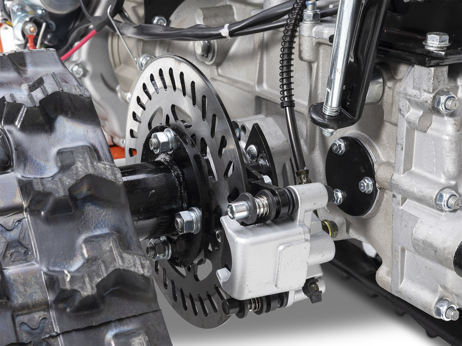 Differential und Differentialsperre: Das Differential ermöglicht eine bessere Manövrierfähigkeit, die Differentialsperre, die über den Hebel am Lenker eingeschaltet wird, ermöglicht eine bessere Bodenhaftung auch an Hängen und eine problemlose Geradeausfahrt.