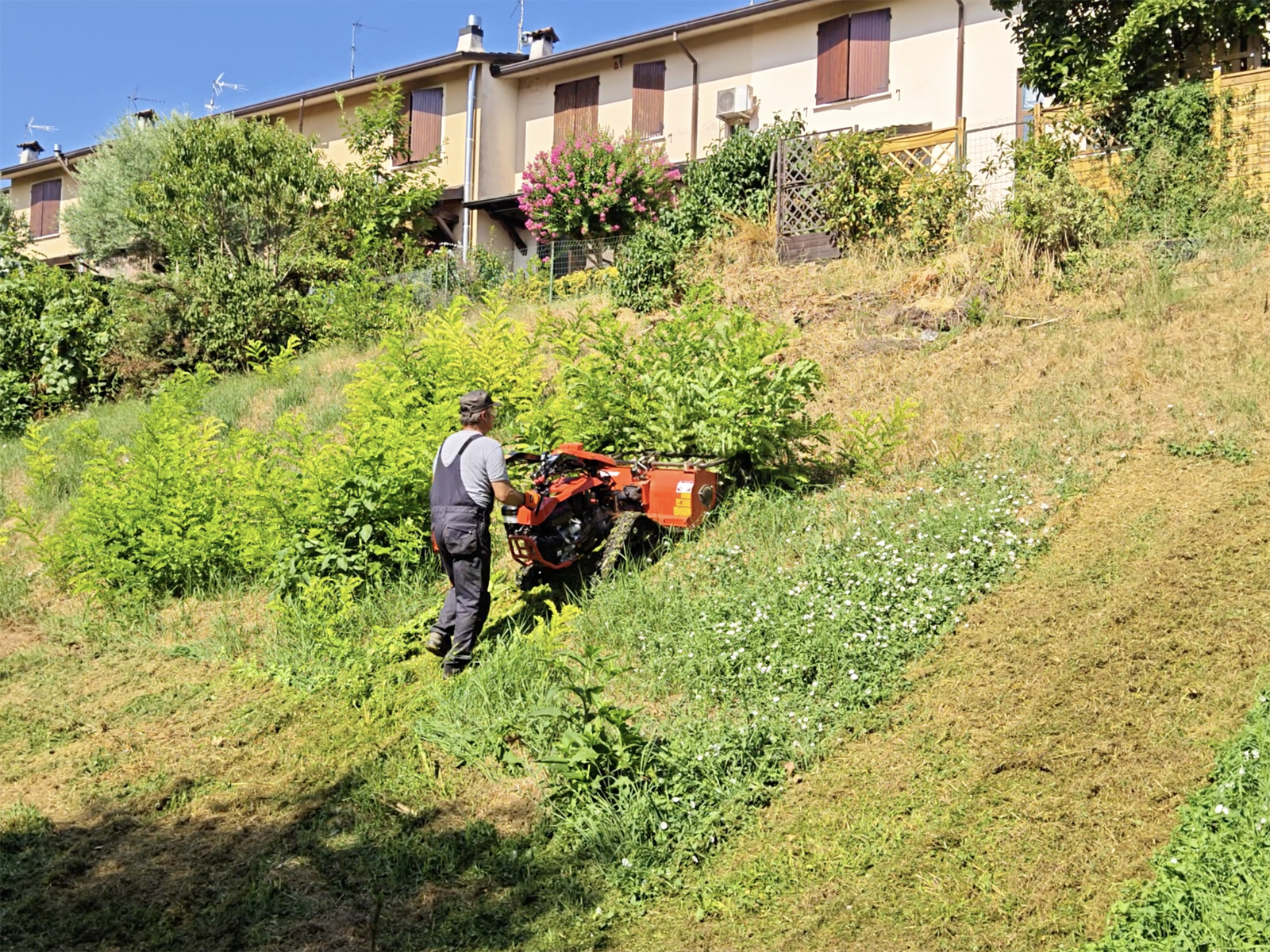 Mulchen von Gras an Hängen und auf unbebauten Flächen.
