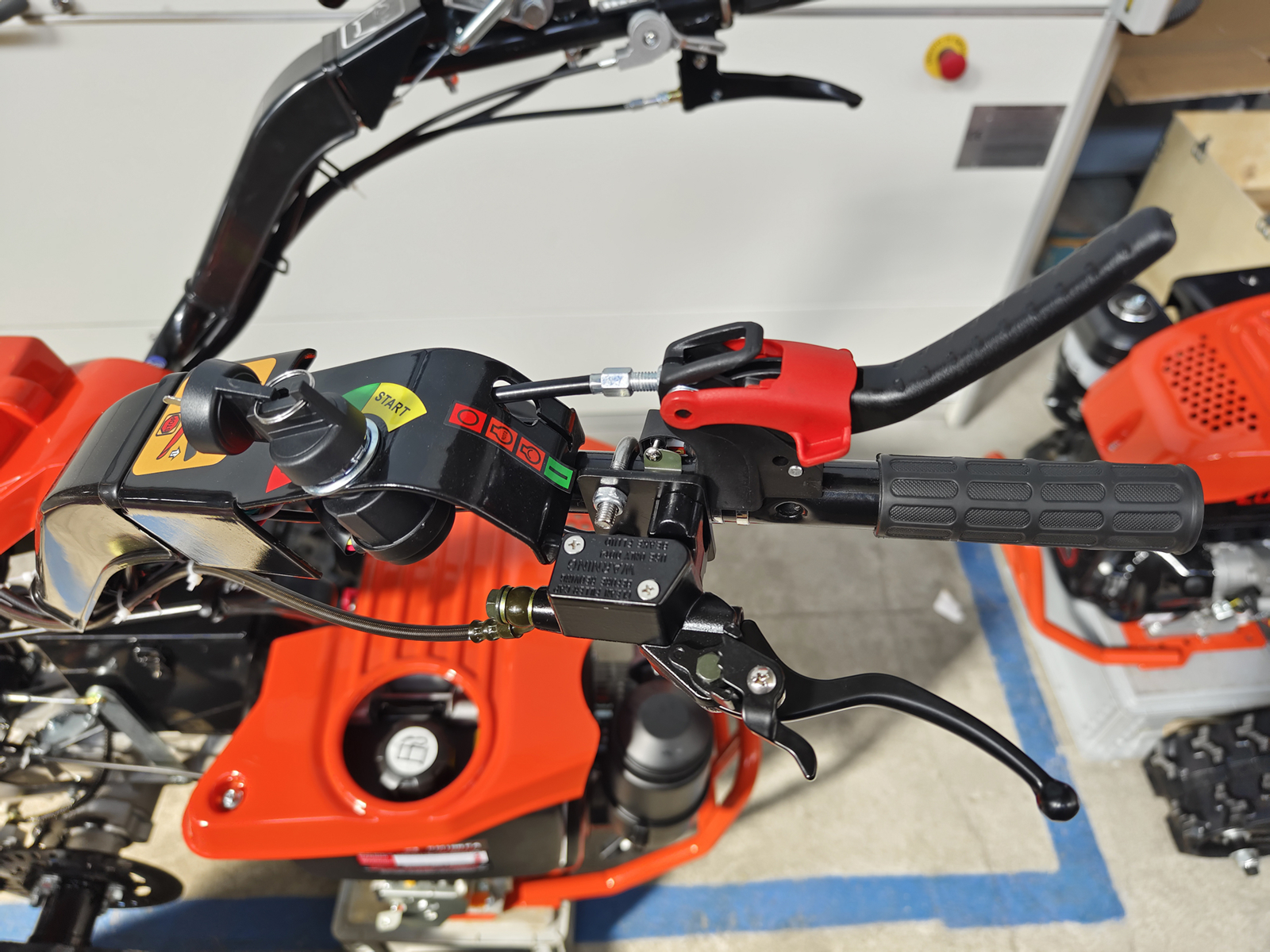 - 180° umkehrbar, so dass an den Motorkultivator sowohl vordere Anbaugeräte (z. B. Mulcher) als auch hintere Anbaugeräte (z. B. Hacke) angebaut werden können.