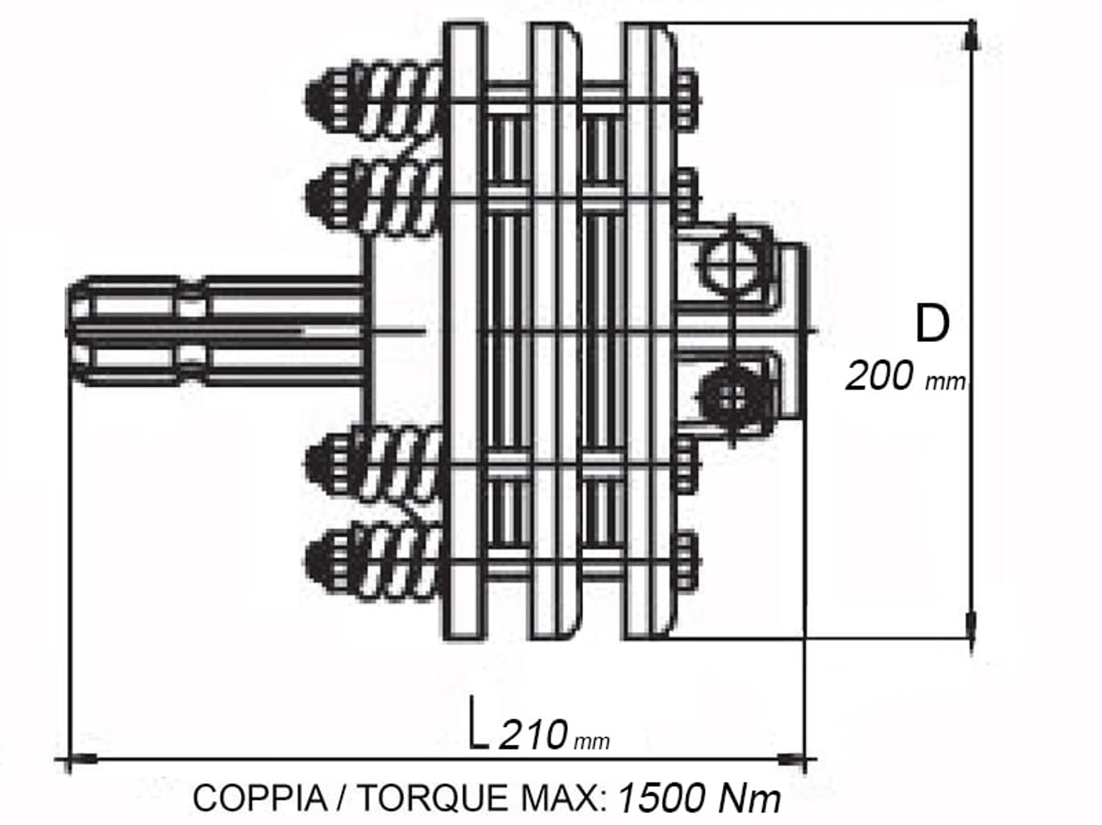 Ограничивает передаваемый крутящий момент до калибровочного значения; этот крутящий момент продолжает передаваться в течение всего периода работ. Это не влечет за собой приостановление работ. Можно регулировать калибровку, воздействуя на пружины. Муфта должена быть установлена на рабочей стороне машины.