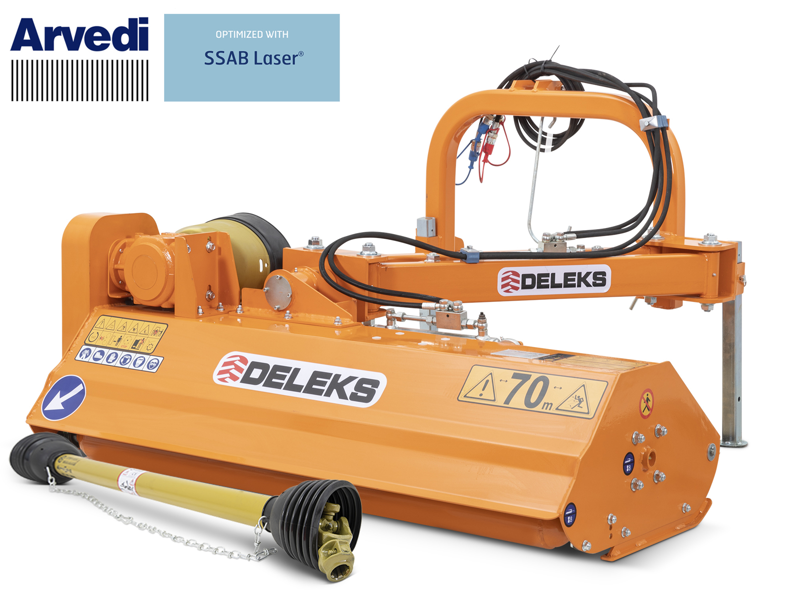 DELEKS® VOLPE-100  Мульчер боковой лёгкой серии VOLPE-100 работает на тракторах мощностью 25-45 л.с., крепится с помощью универсального 3-х точечного крепления I категории. Вид рабочих органов: молотки (или по запросу ножи). Предназначен как для коммунальных, муниципальных, так и для сельскохозяйственных работ.