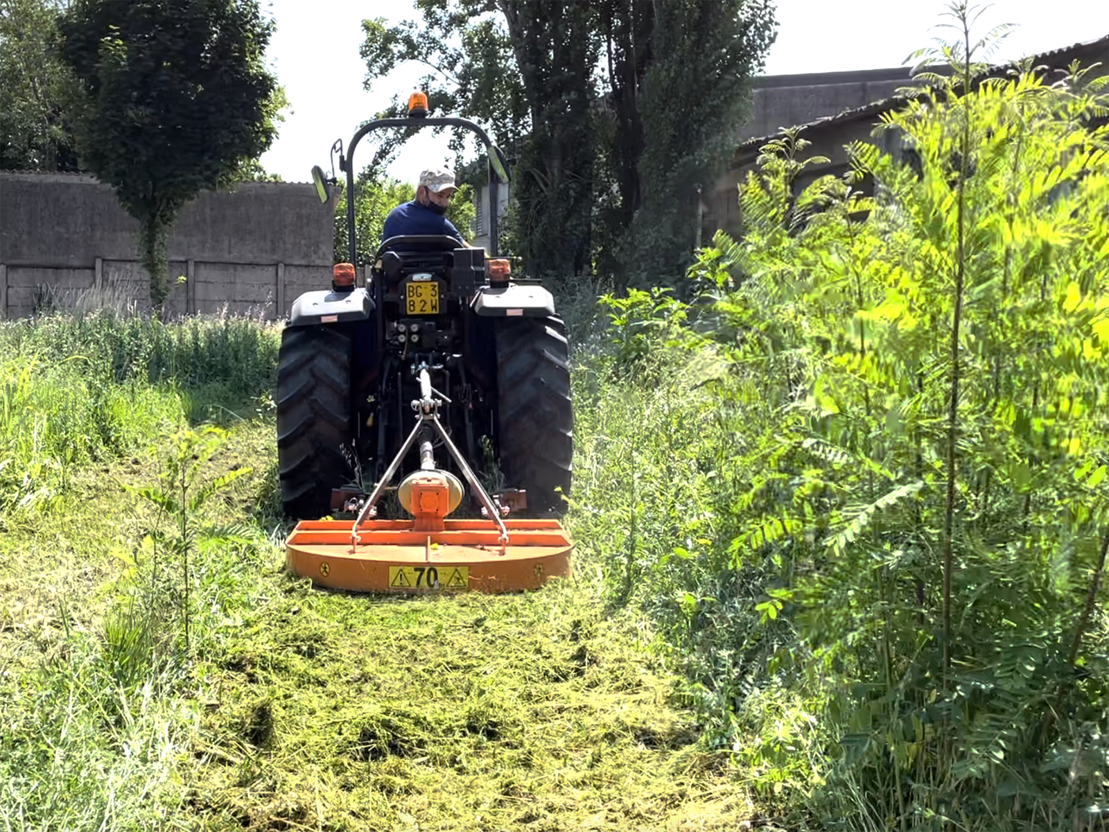 Обратимое использование: инвертируя 3-точечную сцепку и множитель, можно использовать косилку фронтально.