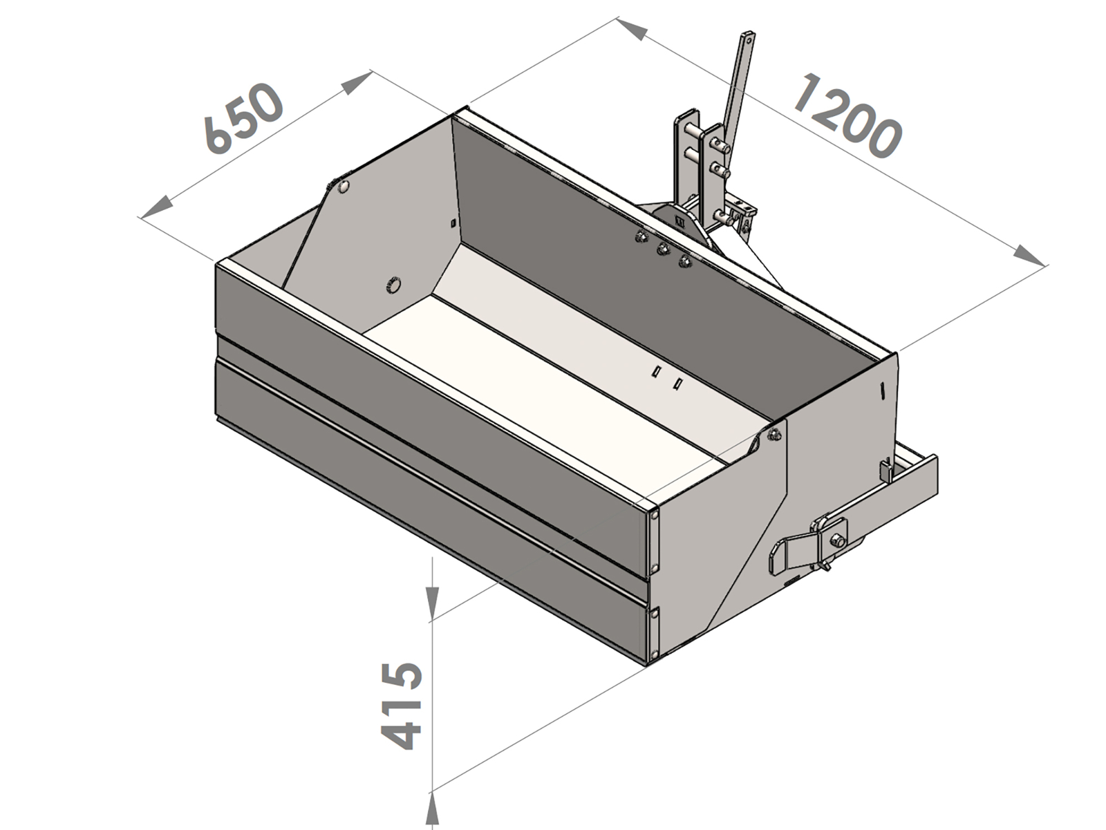 Cupă "Made in Italy"cu basculanta manuală BUCKET-120 pentru încărcare, transport de materiale cum ar fi pământ, pietriș, zăpadă și operații de curățare generală a deșeurilor. Specificații pentru tractoarele cu putere redusă de 14-40 CP, cum ar fi New Holland Boomer 25-30, John Deere Seria 1-2, Pasquali, Valpadana, BCS sau tractoare japoneze cum ar fi seria Kubota B, Iseki, Yanmar, Mitsubishi. Atac universal 3 puncte Cat. 1 (19-22mm). Conformitatea CE. Garanție 2 ani.