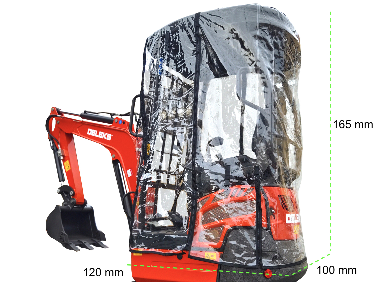 ЗАКРЫТЬDELEKS® Разработан специально для этой модели мини-экскаватора. Выполнен с проемами для прохода оператора и боковыми и передними окнами.