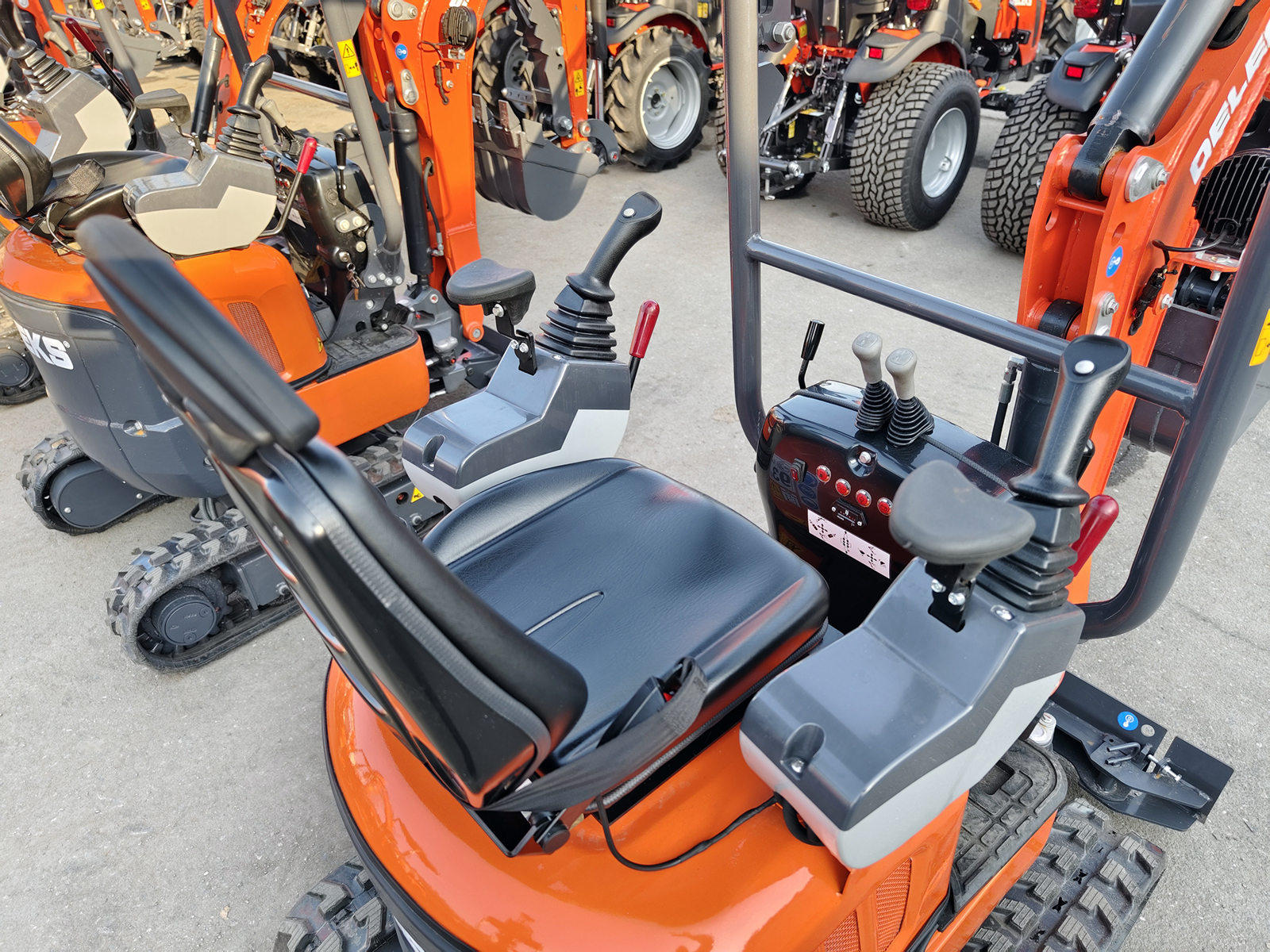 FERMERLa mini-pelle compacte DELEKS® S100 à déport arrière nul, équipée d’un moteur diesel Kubota D722 à 3 cylindres, d’un distributeur hydraulique et de joysticks latéraux Made in Italy, d’un châssis extensible et d’une double vitesse commandée par pédale gauche, offre un équilibre parfait entre puissance, précision et confort d’utilisation.